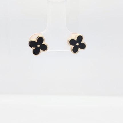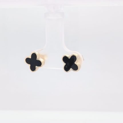Zarcillos (9 x 9 mm) Treboles c/ Esmalte Negro (Post) – Oro Amarillo 14Kts
