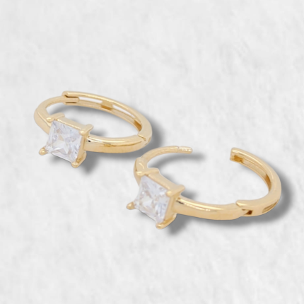 Huggies (14 mm) c/ Zircon Princess Cut – Oro Amarillo 14Kts