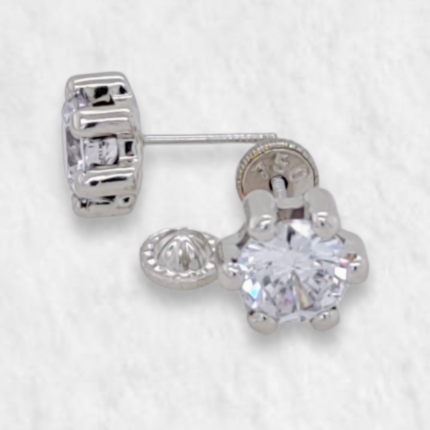 Zarcillos (6 mm) 6 Prongs c/ Zircon (Screwback/Abridores) – Oro Blanco 18Kts