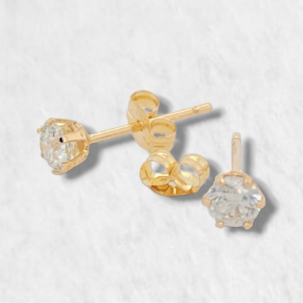 Zarcillos (2 mm) Screwback c/ Zircon & 4 Prongs – Oro Amarillo 18Kts