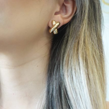 Set Anillo & Zarcillos c/ Diamantes & Lineas de Oro Blanco – Oro Amarillo 18Kts
