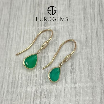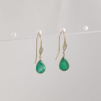 Zarcillos Gota Esmeralda & Diamantes – Oro Amarillo 14 Kts