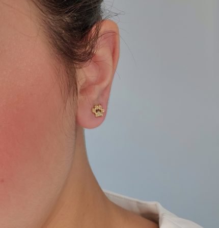 Zarcillos (0.09 Ct) Post Huella de Perro (PAW) C/ Diamantes Pave – Oro Amarillo 14Kts