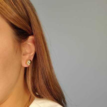 Zarcillos (12 mm) Post 1/2 Esferas – Oro Amarillo 14Kts