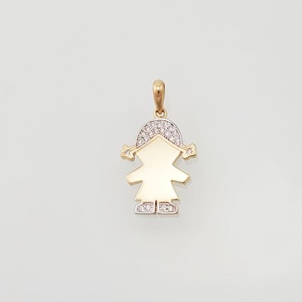 Dije Mediano (13.5 x 16 mm) Niña con Zircones – Oro Amarillo 14 Kts