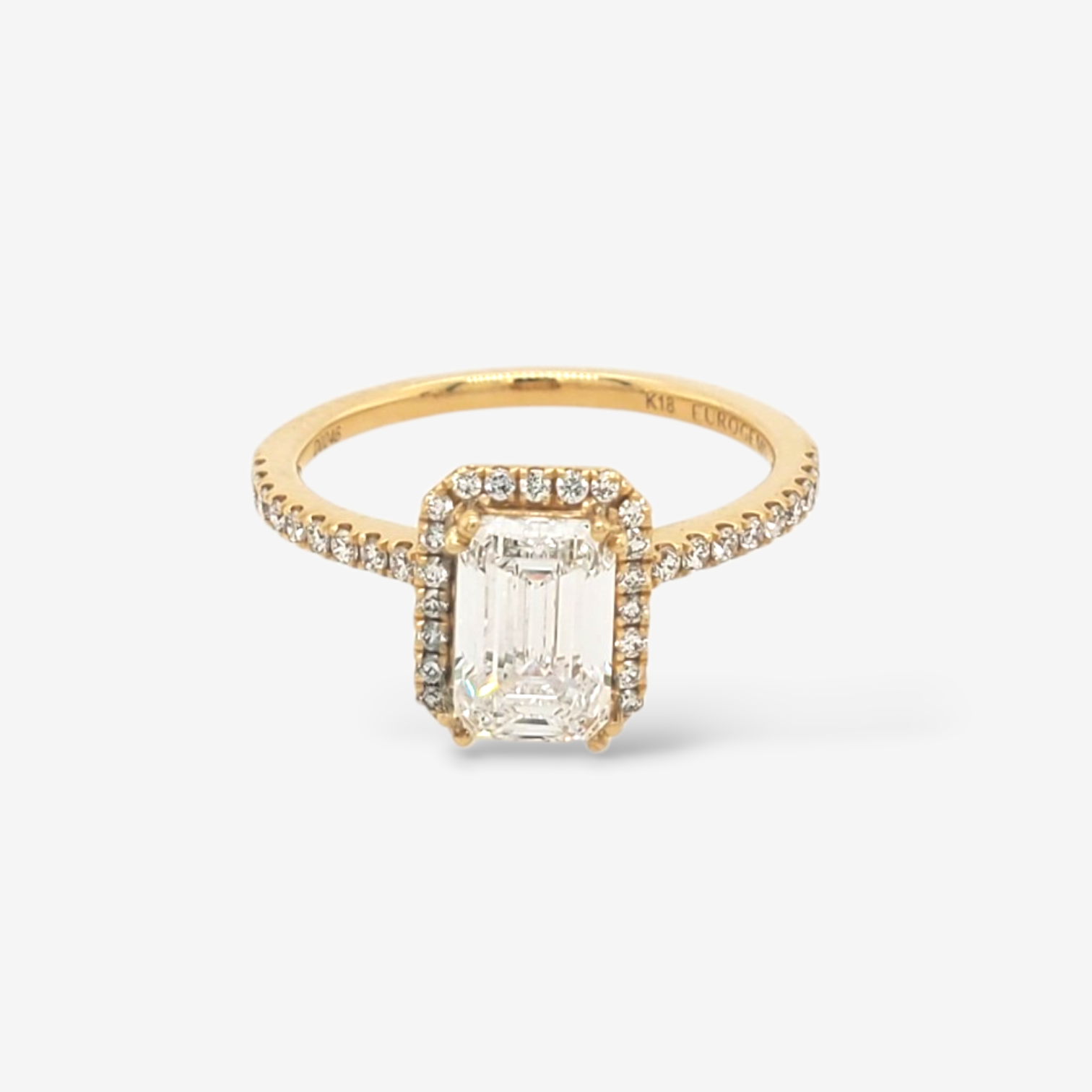 Anillo (1.04 Ct) Compromiso Diamante Labgrown Emerald c/ Halo & Aro Diamantes Pave - Oro Amarillo 18Kts