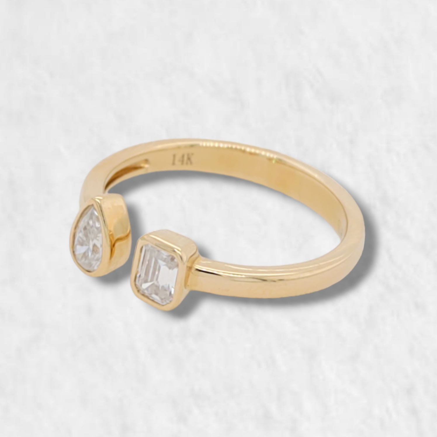Anillo Abierto c/ Hexagono & Gota Moissanite – Oro Amarillo 14Kts