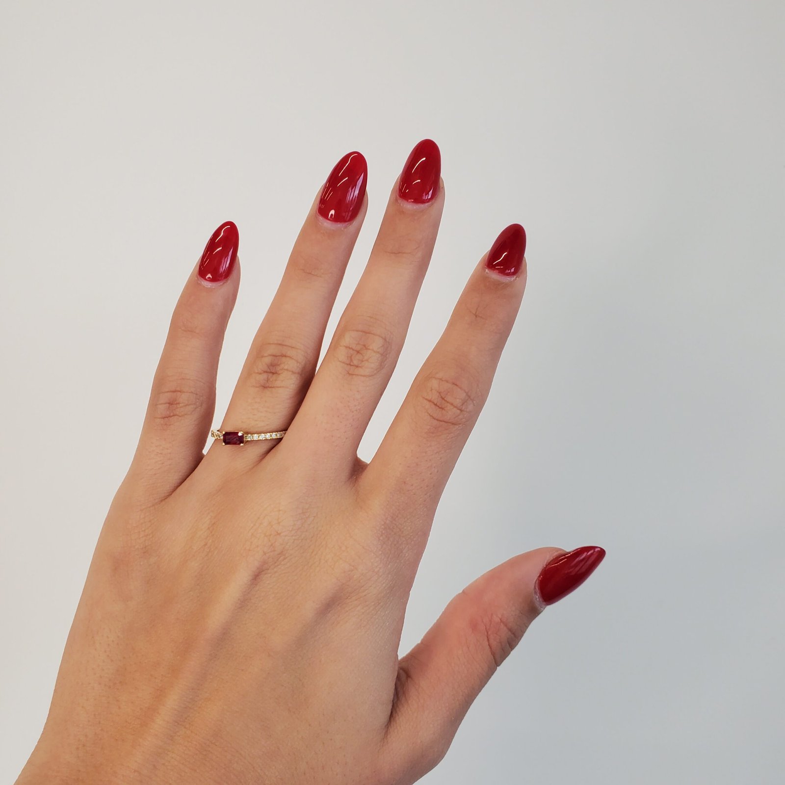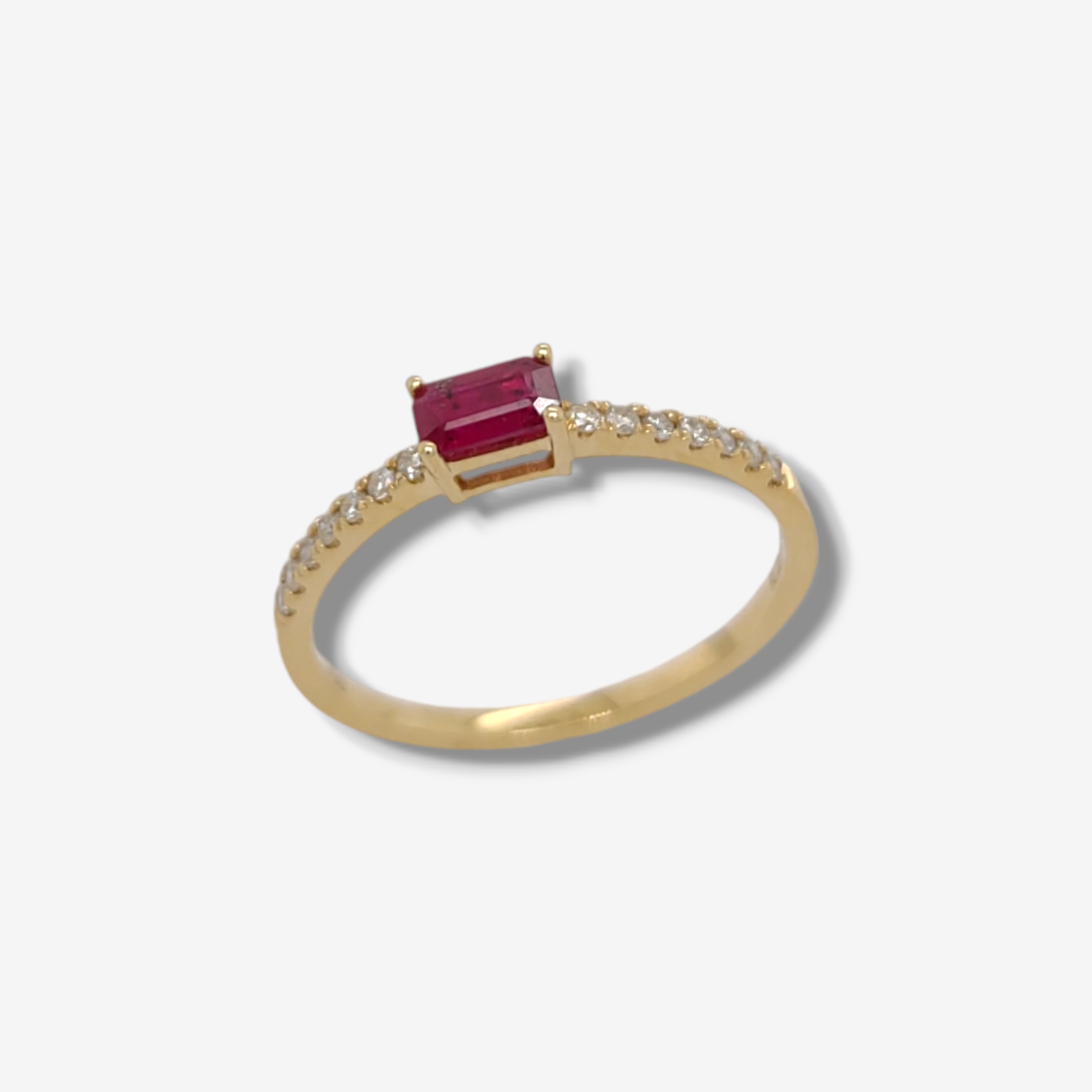 Anillo c/ Rubi Rectangular (0.32 Ct) & Aro de Diamantes Pave (0.13 Ct) – Oro Amarillo 18Kts
