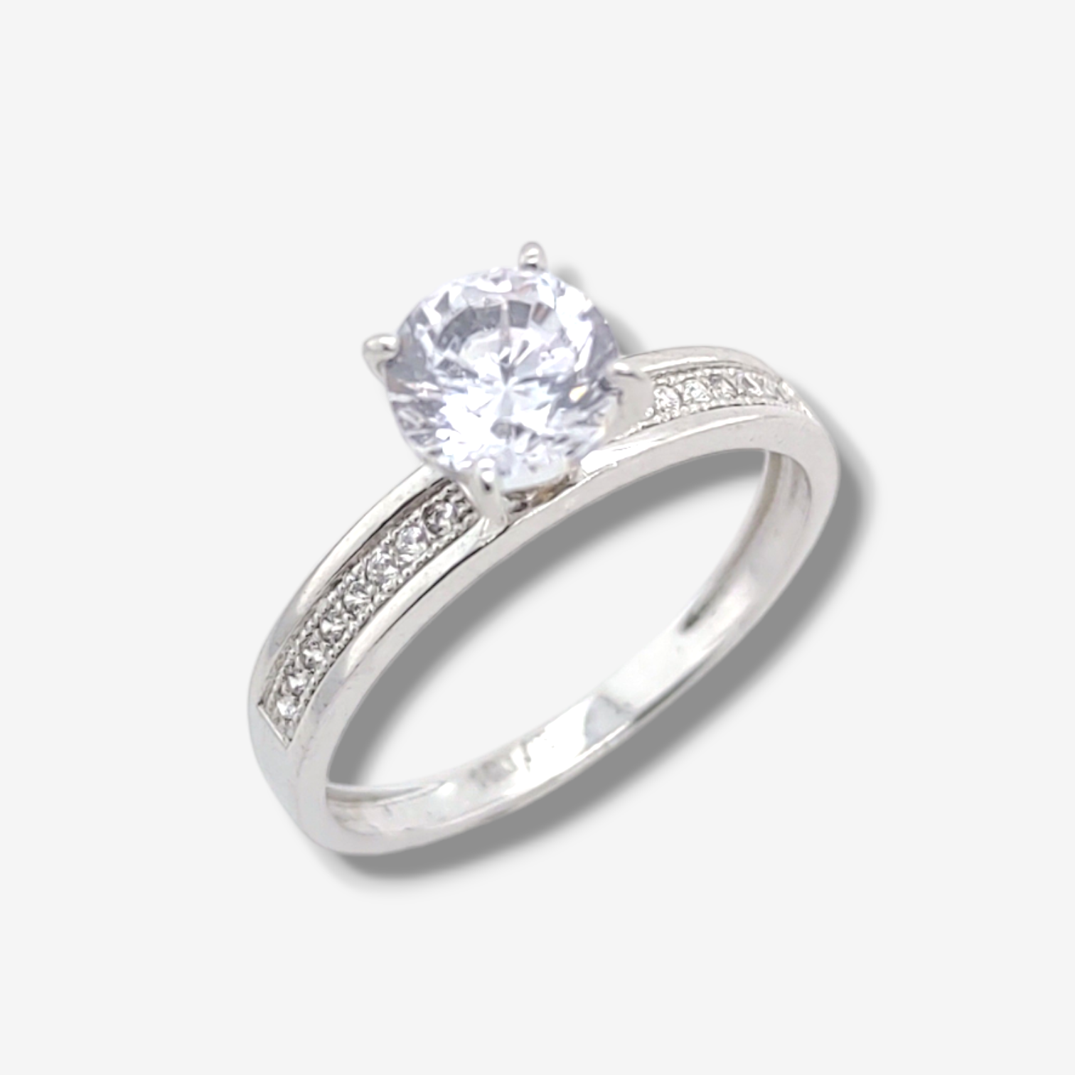 Anillo de Compromiso con Zircón Solitario Corte Brillante – Oro Blanco 14Kts