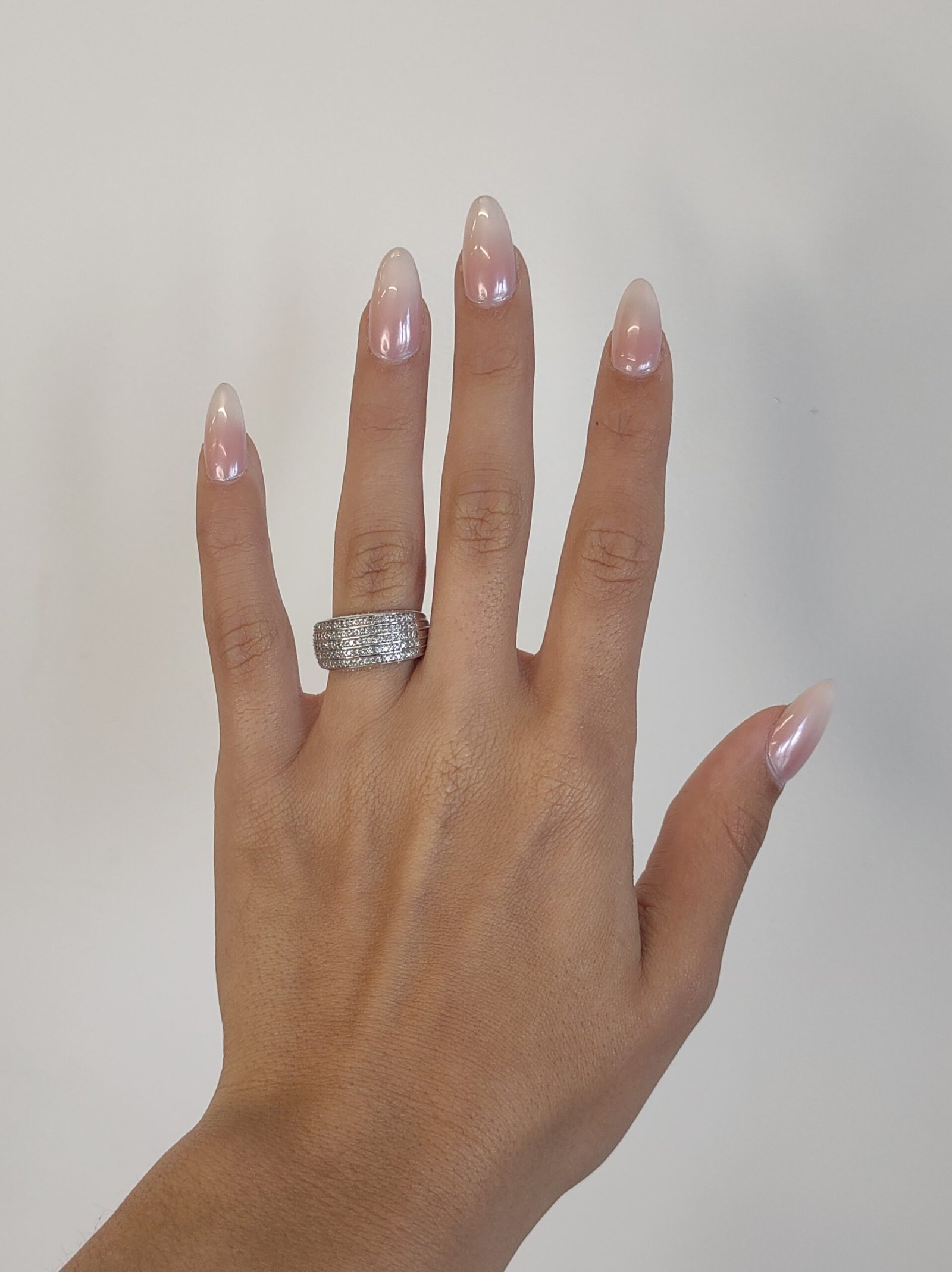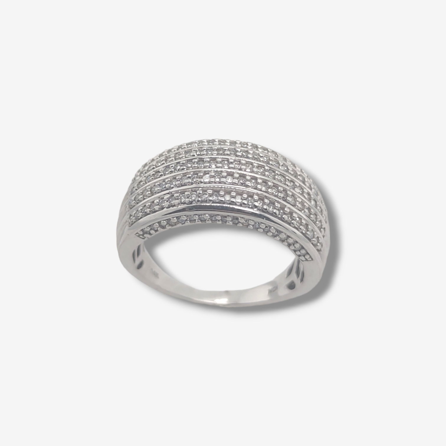 Anillo Domo c/ Diamantes Pave – Oro Blanco 14Kts