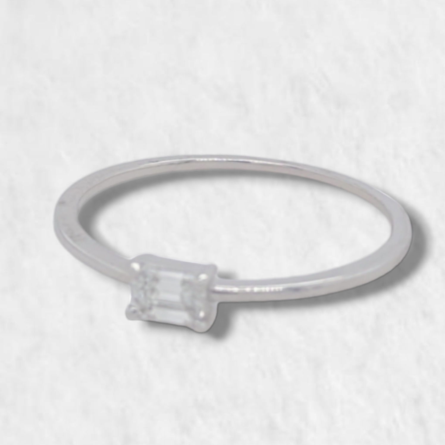 Anillo Fino c/ Diamante Rectangular – Oro Blanco 18Kts