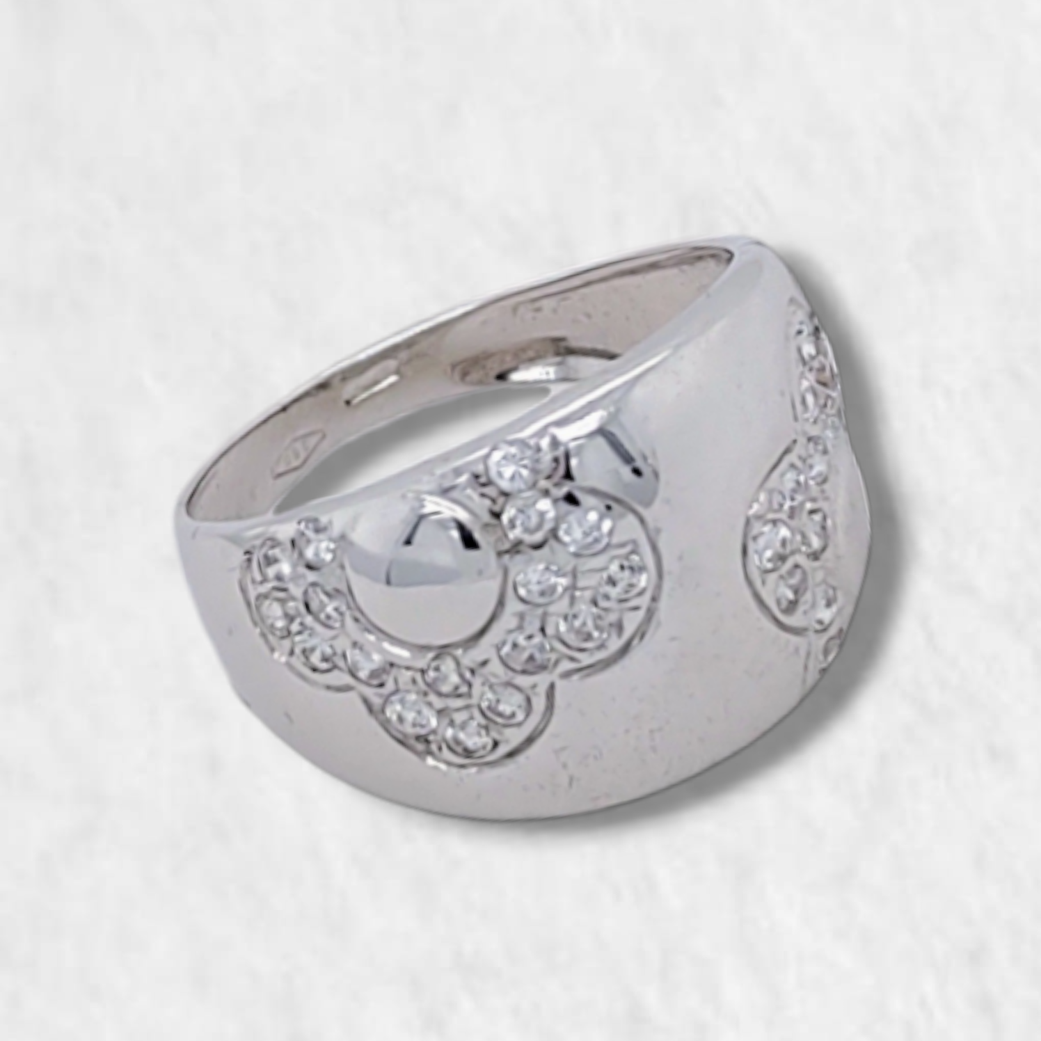 Anillo Flores c/ Zircones Pave – Oro Blanco 18Kts