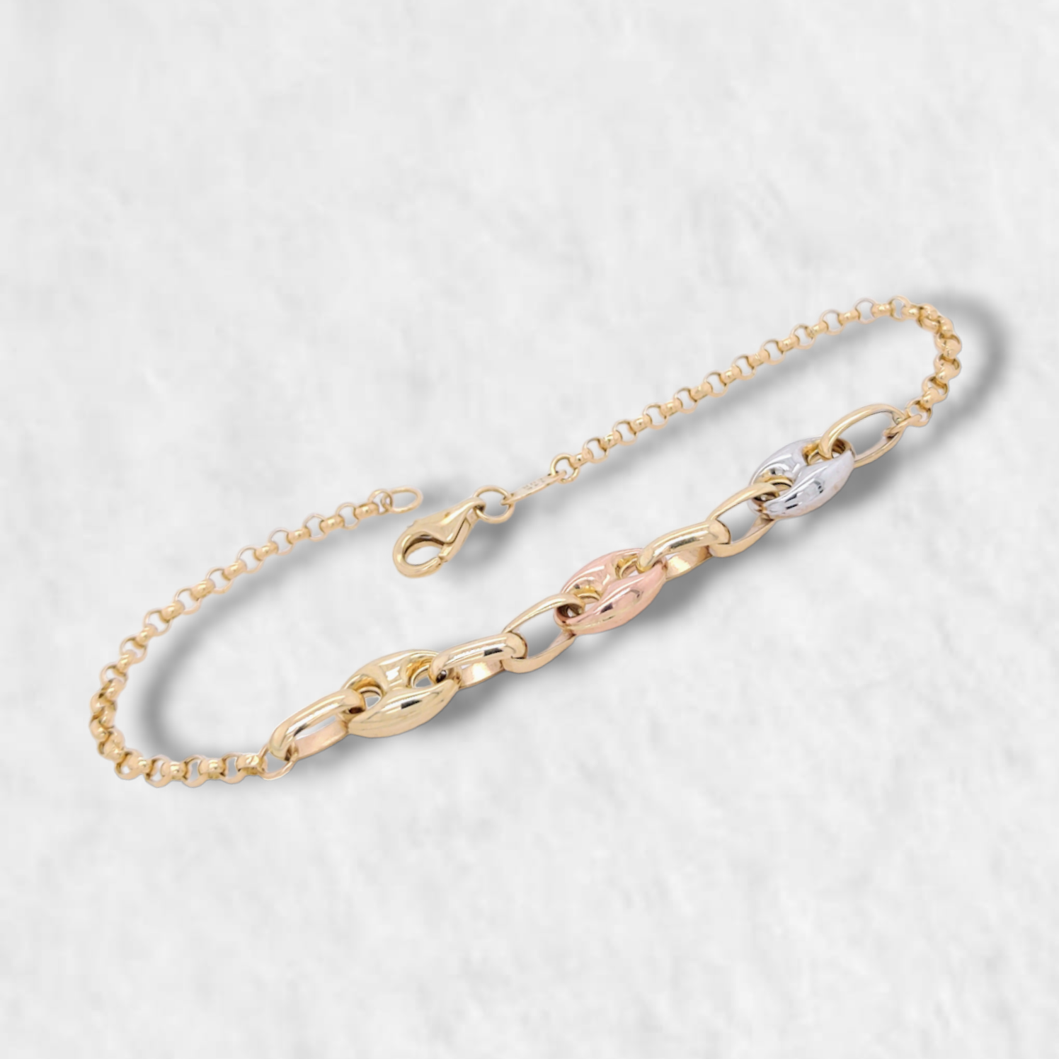 Brazalete c/ Hilo & Punto di Luce c/ Extension de Cadena – Oro Amarillo 14Kts