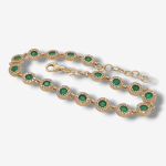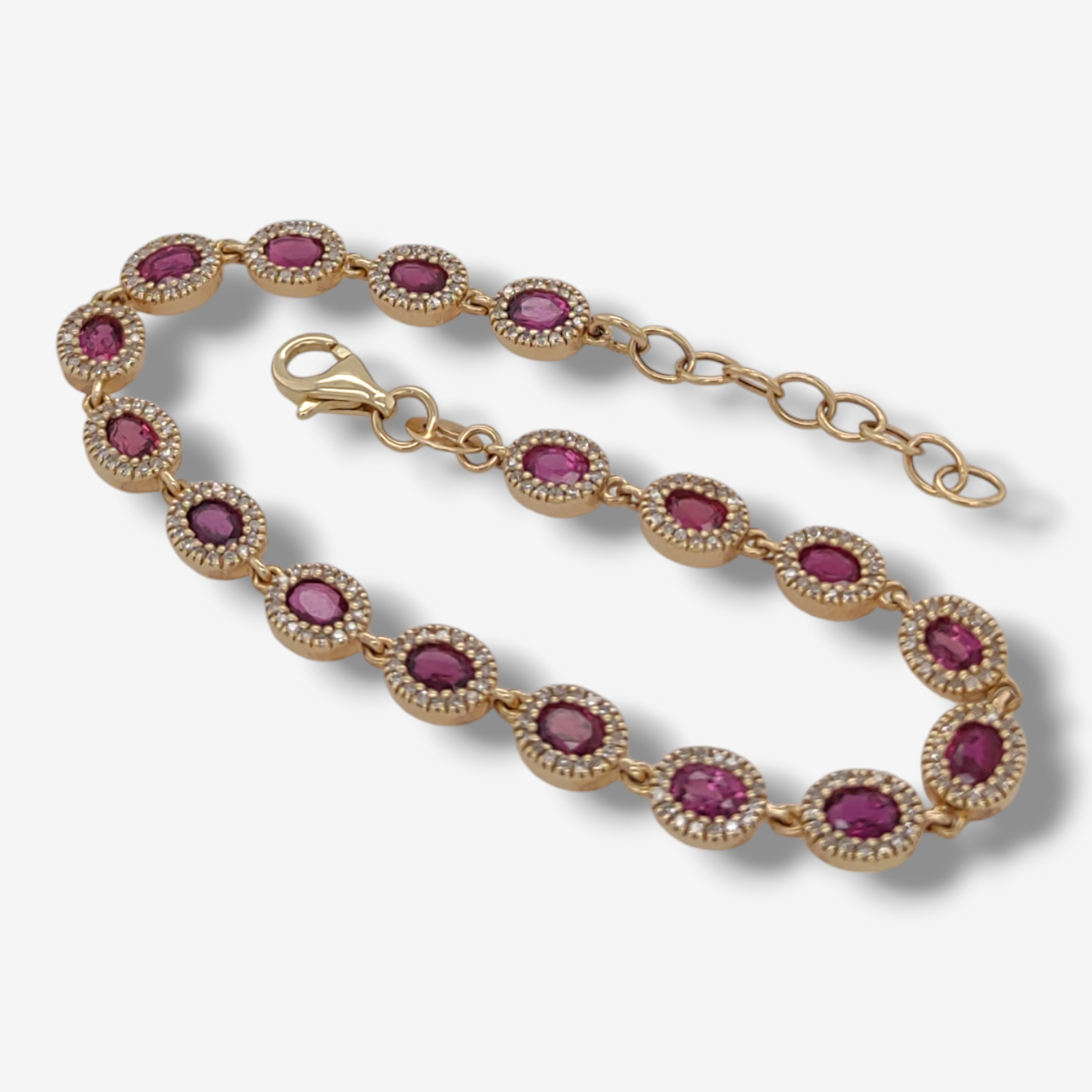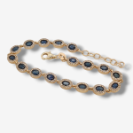 Brazalete (17.5 cm) Zafiros Azules Ovalados (4.45 Ct) c/ Halo de Diamantes Pave Naturales – Oro Amarillo 14Kts