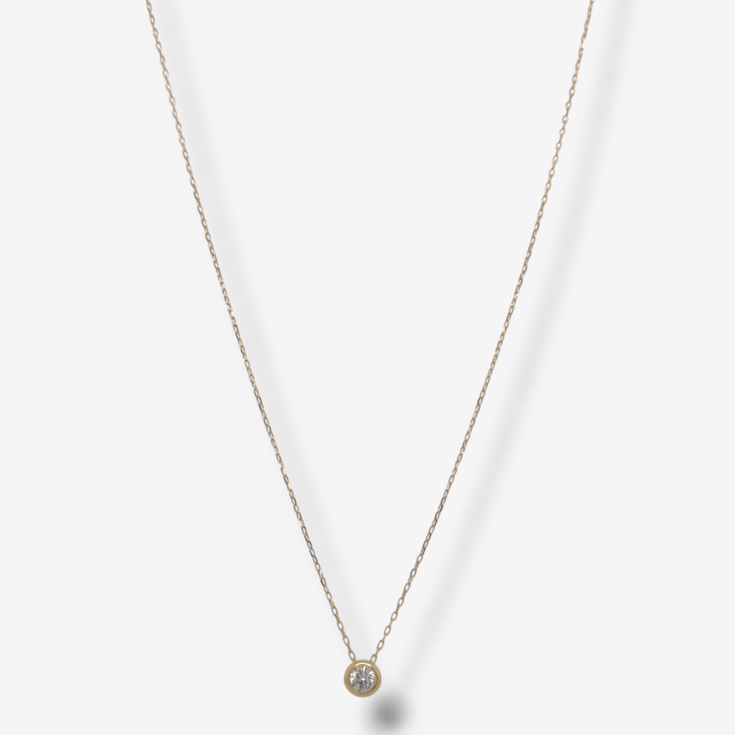 Cadena (40 cm) c/ Diamante Solitario (0.07 Ct) Punto di Luce Bicelado (3 mm) – Oro Amarillo 18Kts