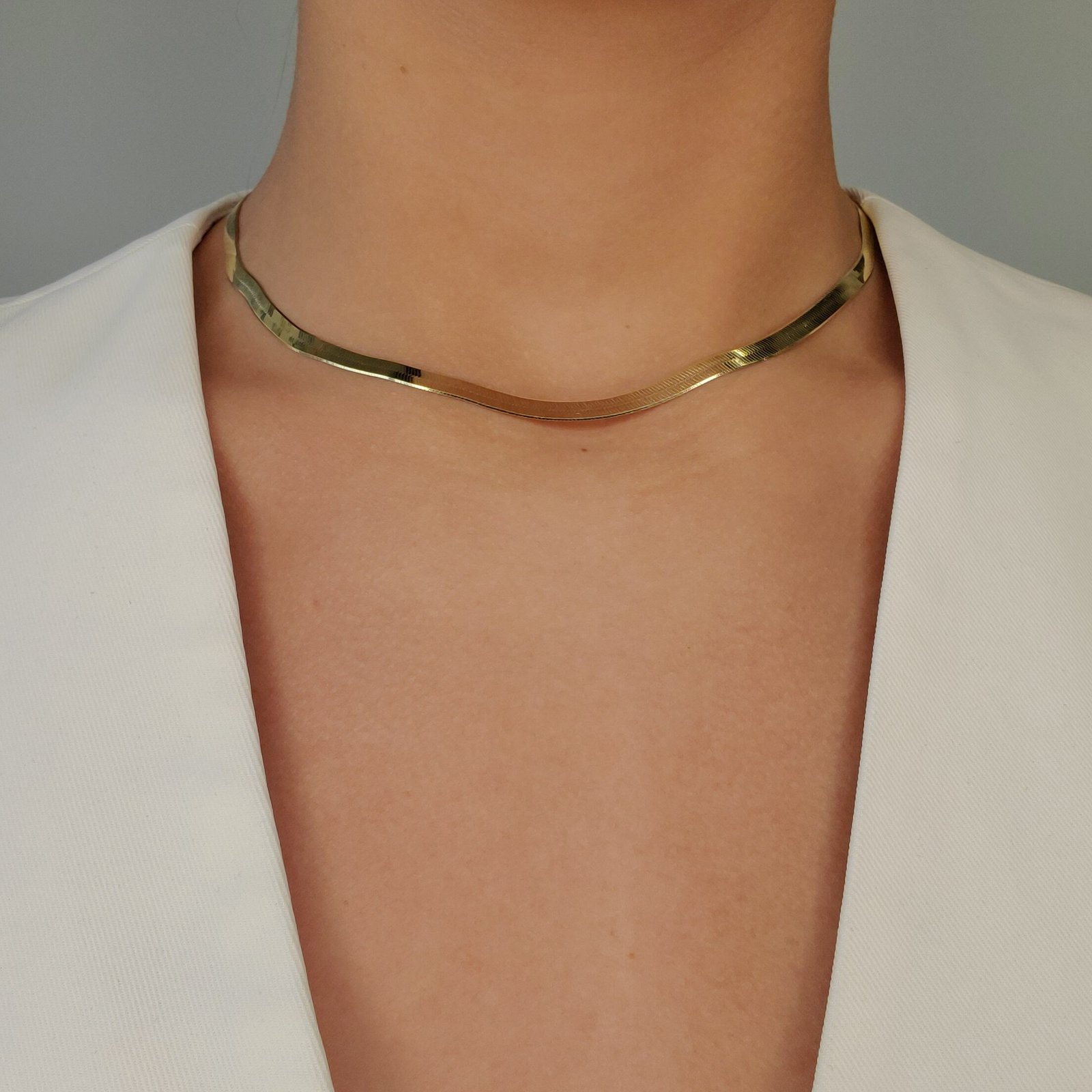 Cadena (40 cm) Gargantilla Herringbone c/ Cierre Lobster (4.5 mm) – Oro Amarillo 14Kts