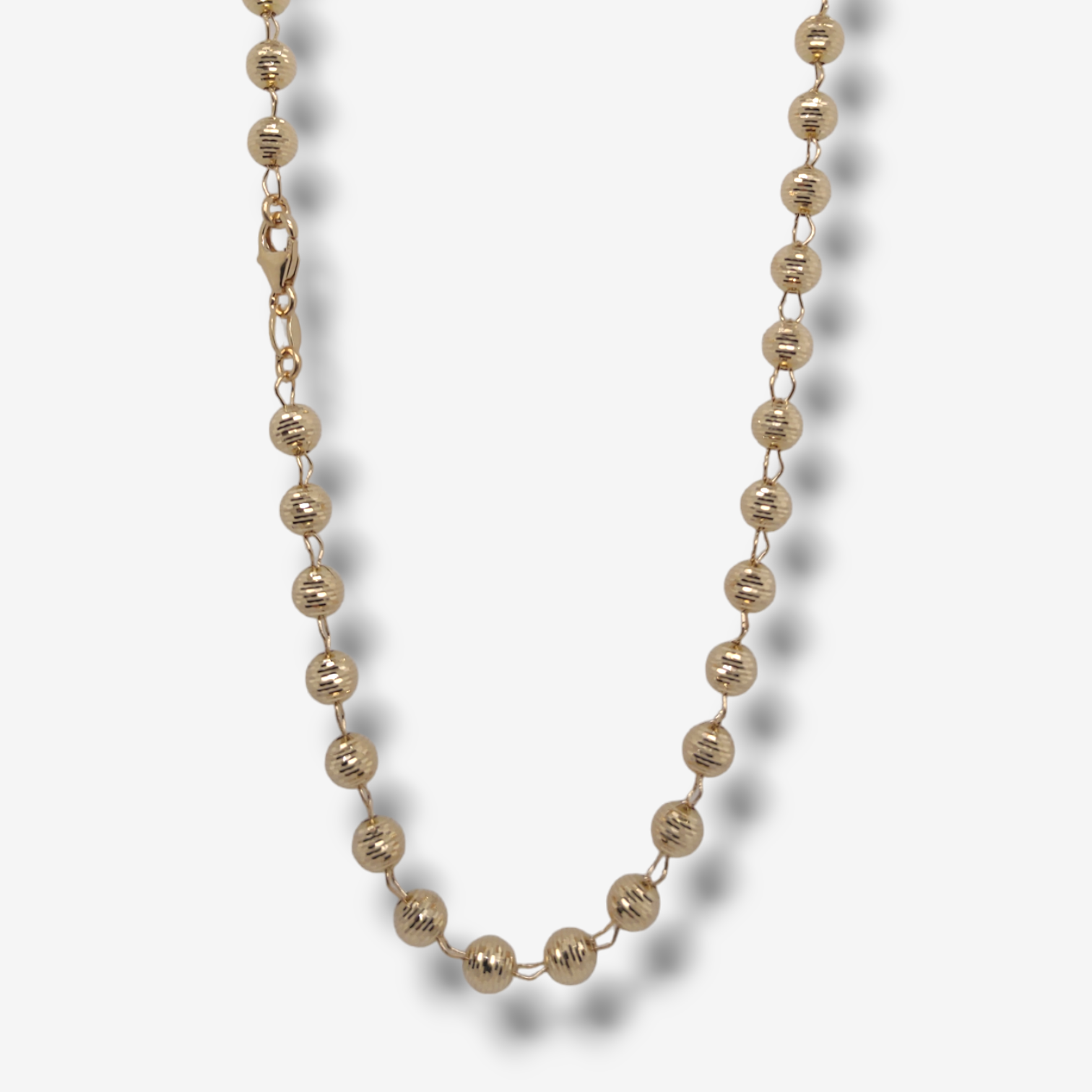 Cadena (42 cm) Entorchada c/ Esferas Diamantadas & Cierre Lobster – Oro Amarillo 18Kts