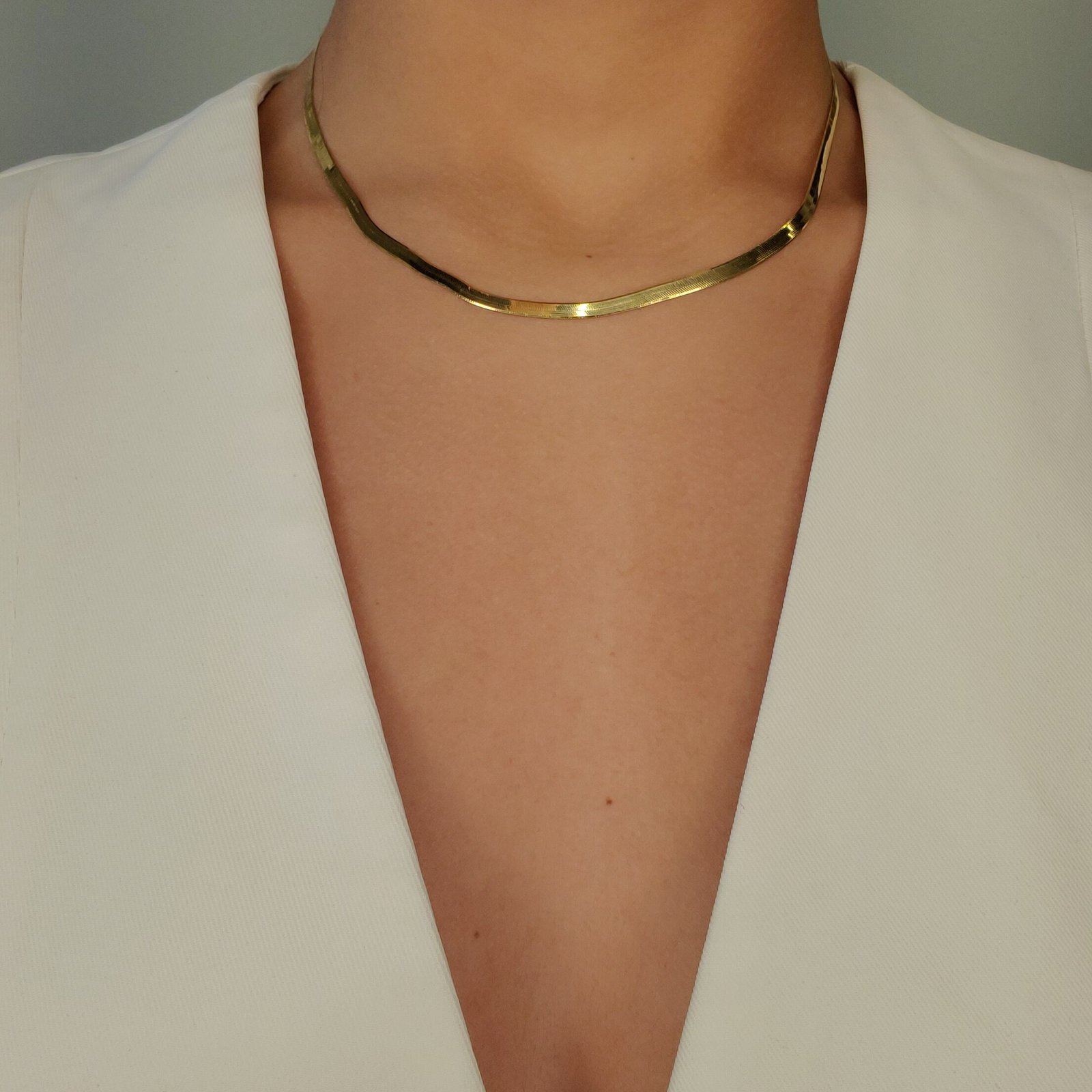 Cadena (42 cm) Gargantilla Herringbone c/ Cierre Lobster (3.5 mm) – Oro Amarillo 14Kts