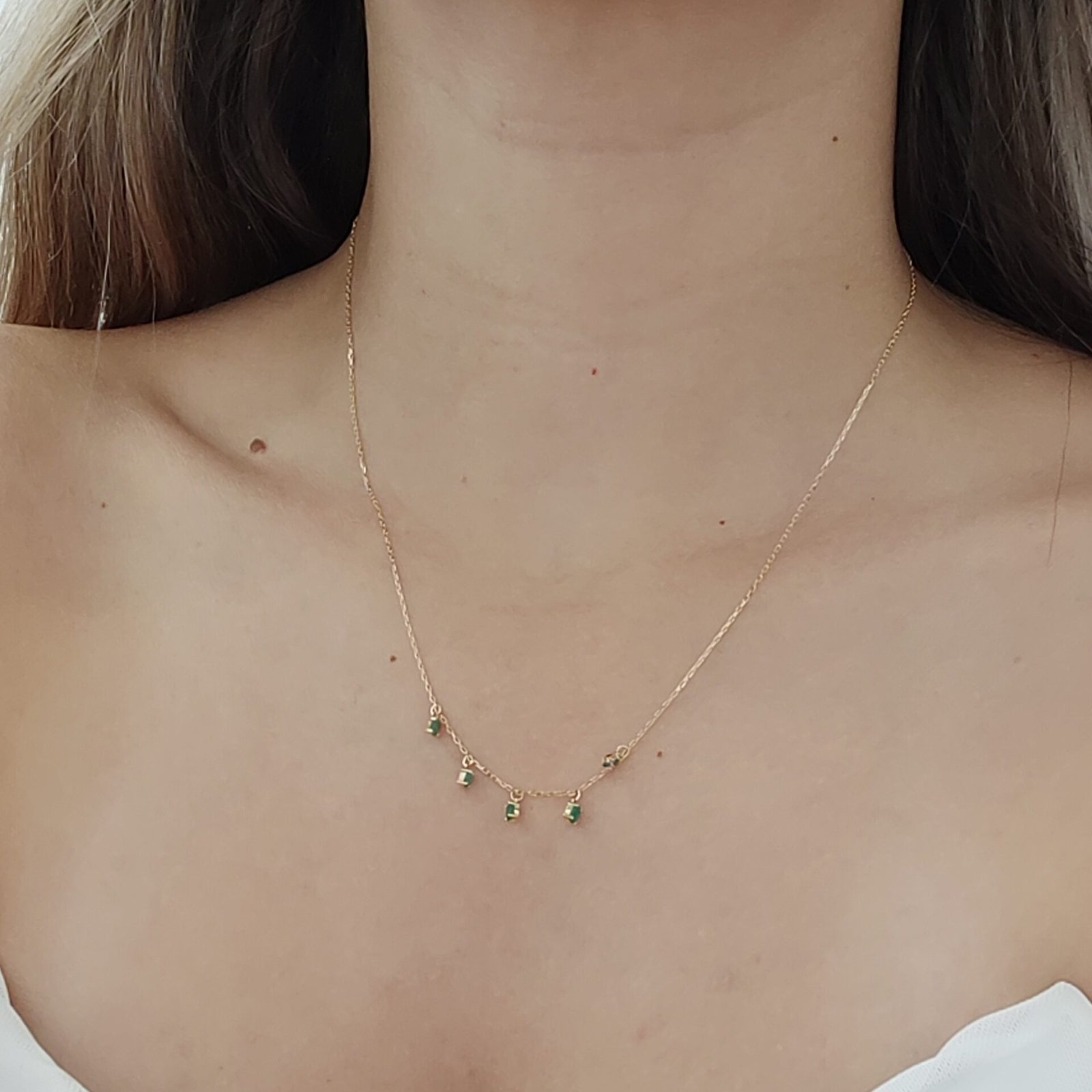 Cadena (45 cm) c/ Esmeraldas Colgantes – Oro Amarillo 18Kts