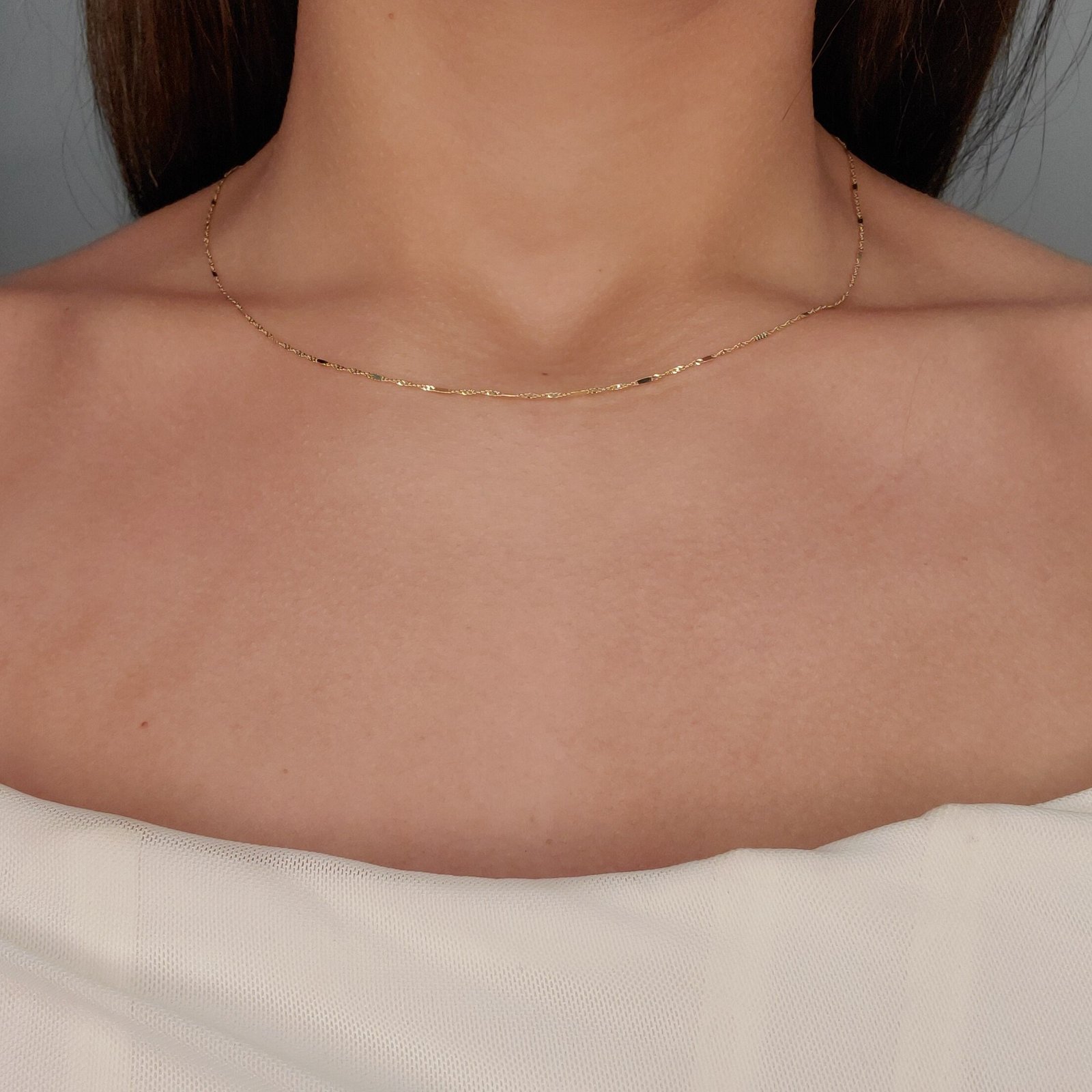 Cadena (45 cm) Tejido Singapur/Espejo (1 mm) c/ Cierre Lobster – Oro Amarillo 18Kts