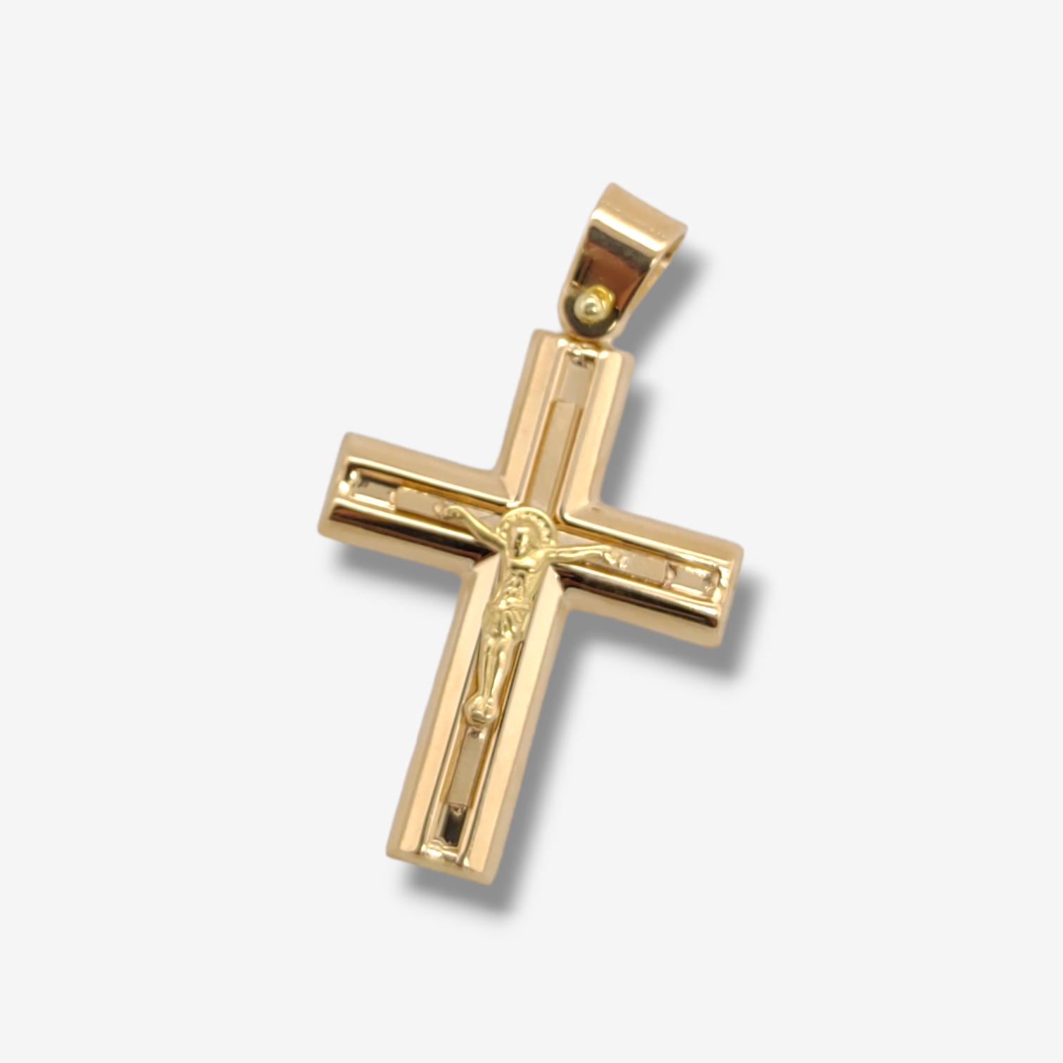 Crucifijo (20 x 26 mm) Macizo Doble Cruz – Oro Amarillo 18Kts