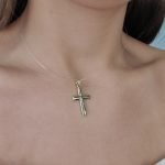 Cruz (18 x 26 mm) Mediano Tubo Media Cana Light – Oro Amarillo 14Kts