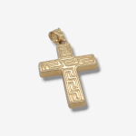 Cruz (20 x 26 mm) Tubo Rectangular Light c/ Greca Estampada – Oro Amarillo 14Kts