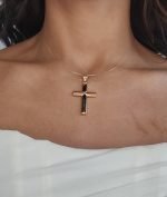 Cruz (25 x 37 mm) Tubo Ovalado Lizo c/ X Central – Oro Amarillo 18Kts