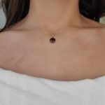Dije (11 x 13 mm) Roseton Granate Ovalado c/ Halo Granates – Oro Amarillo 14Kts