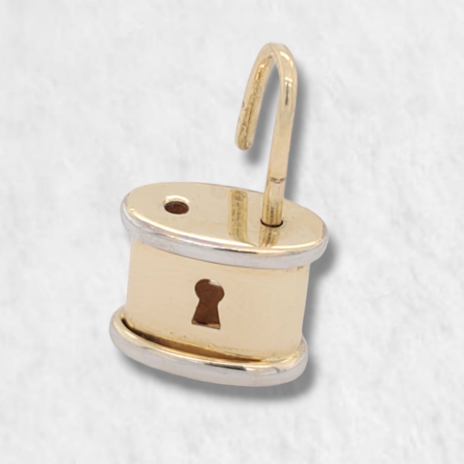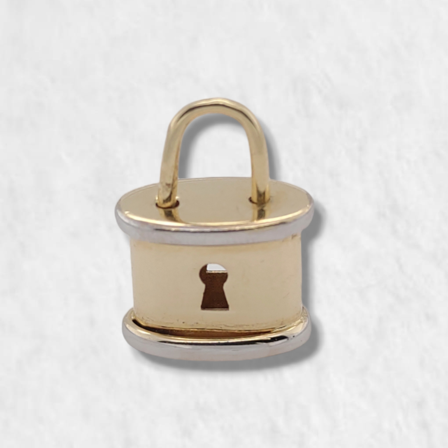 Dije (12 x 16 mm) Mosqueton Candado Liso – Oro Amarillo 14 Kts