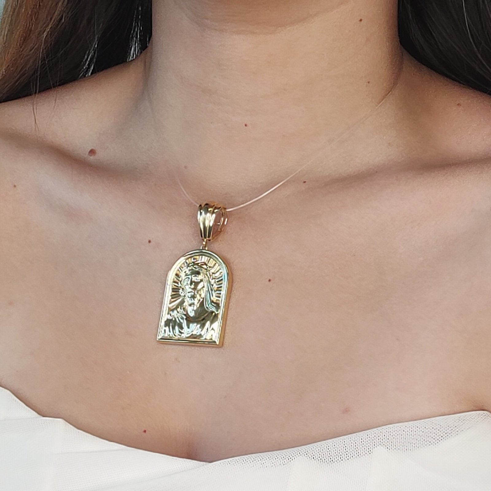 Dije (26 x 37 mm) Rostro de Jesus & Marco de Arco – Oro Amarillo 18Kts