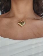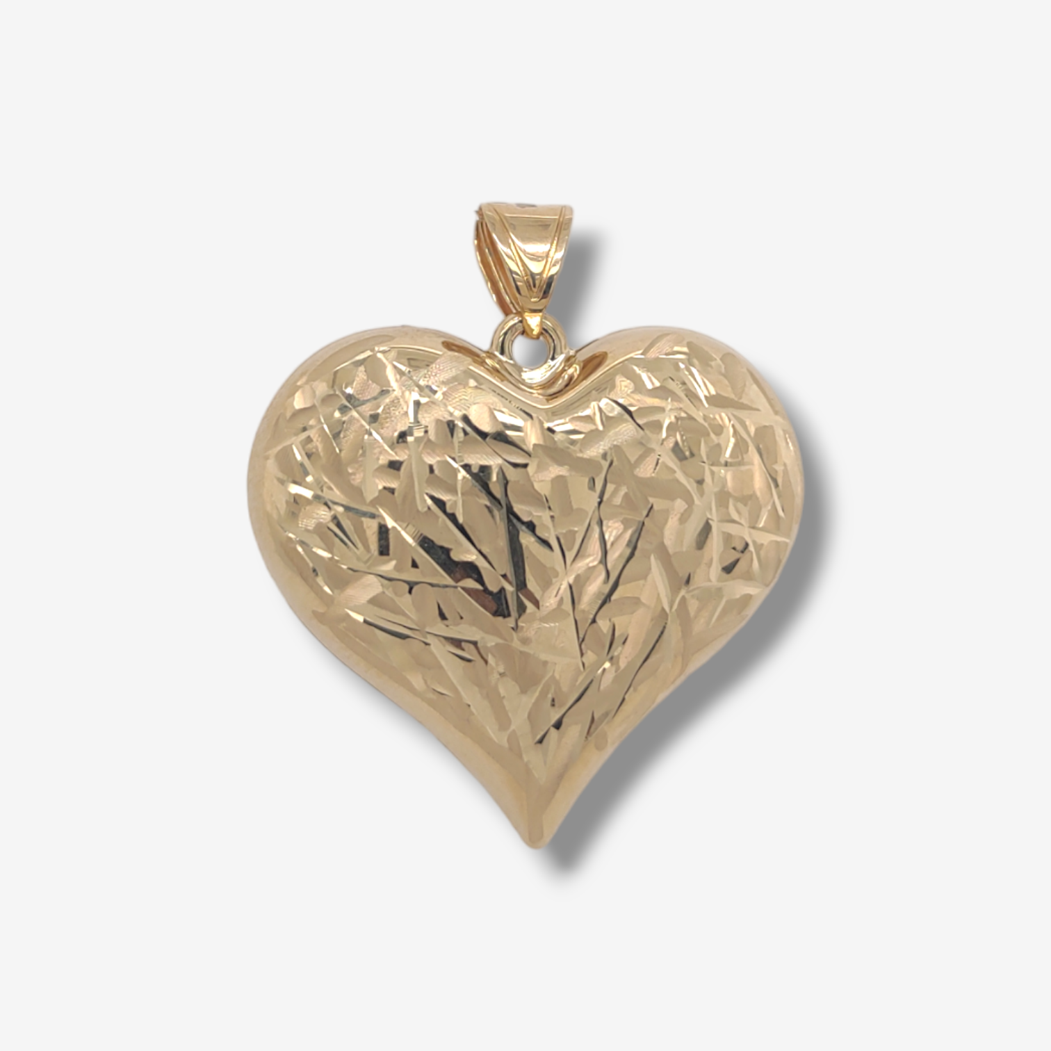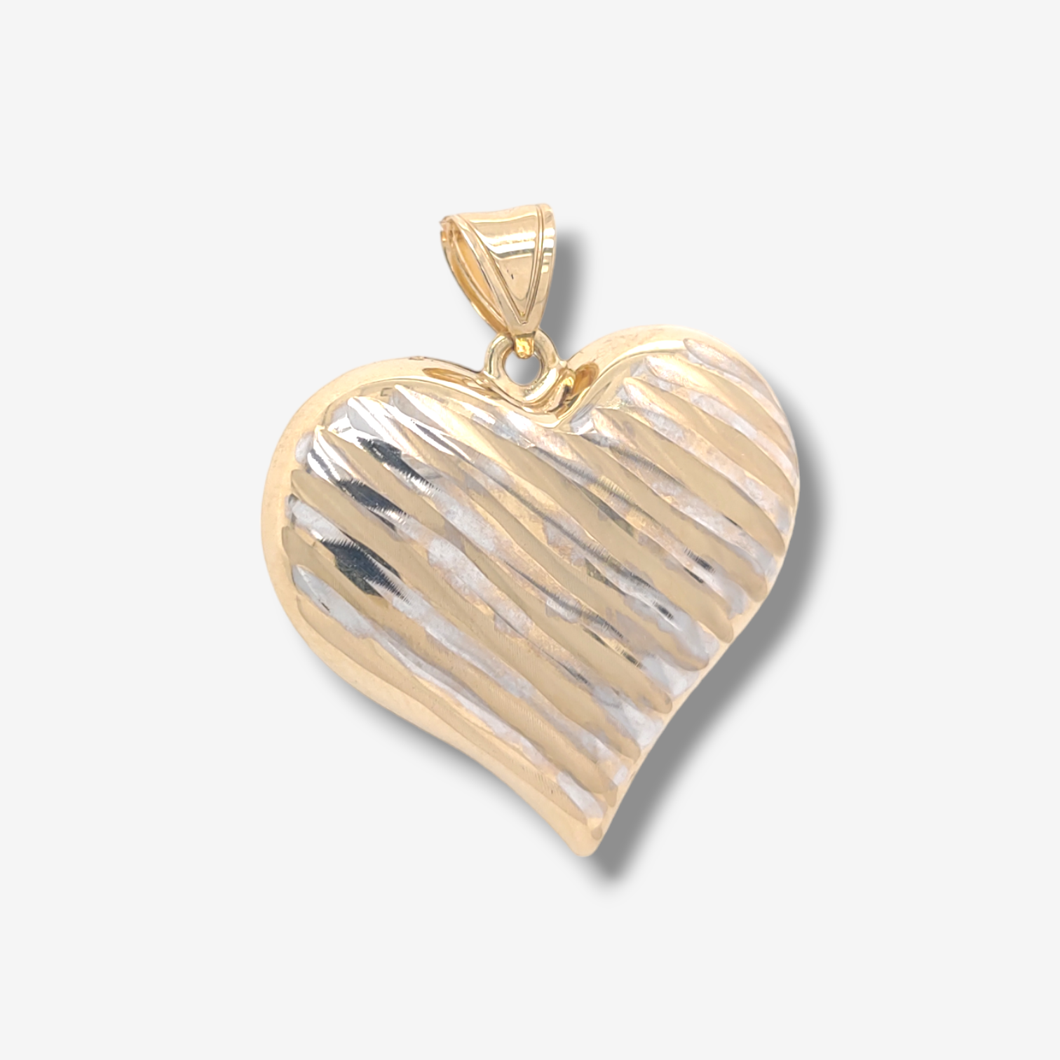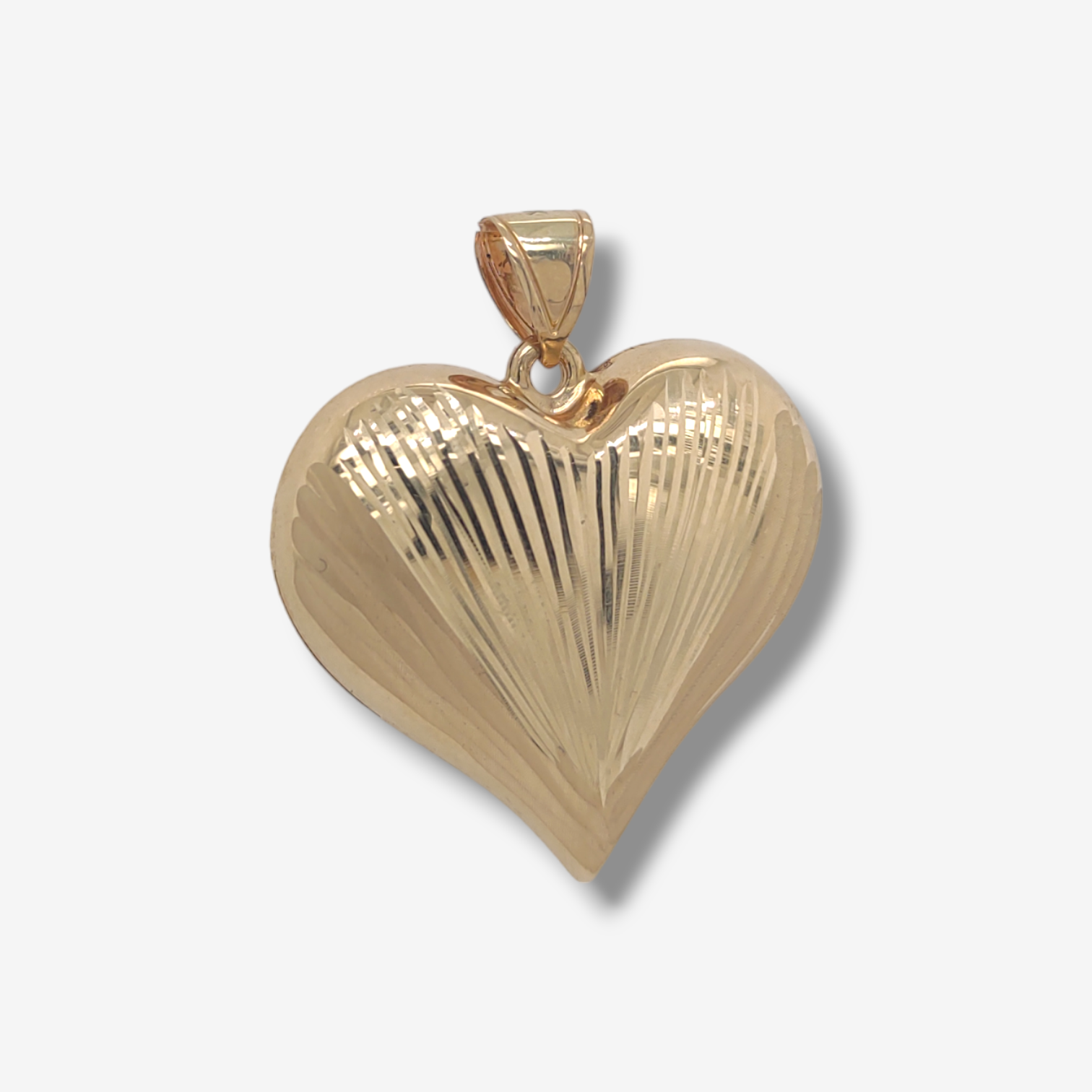 Dije (30 x 28 mm) Corazon Grande Puff Reversible Lineas Diamantadas – Oro Amarillo 18Kts