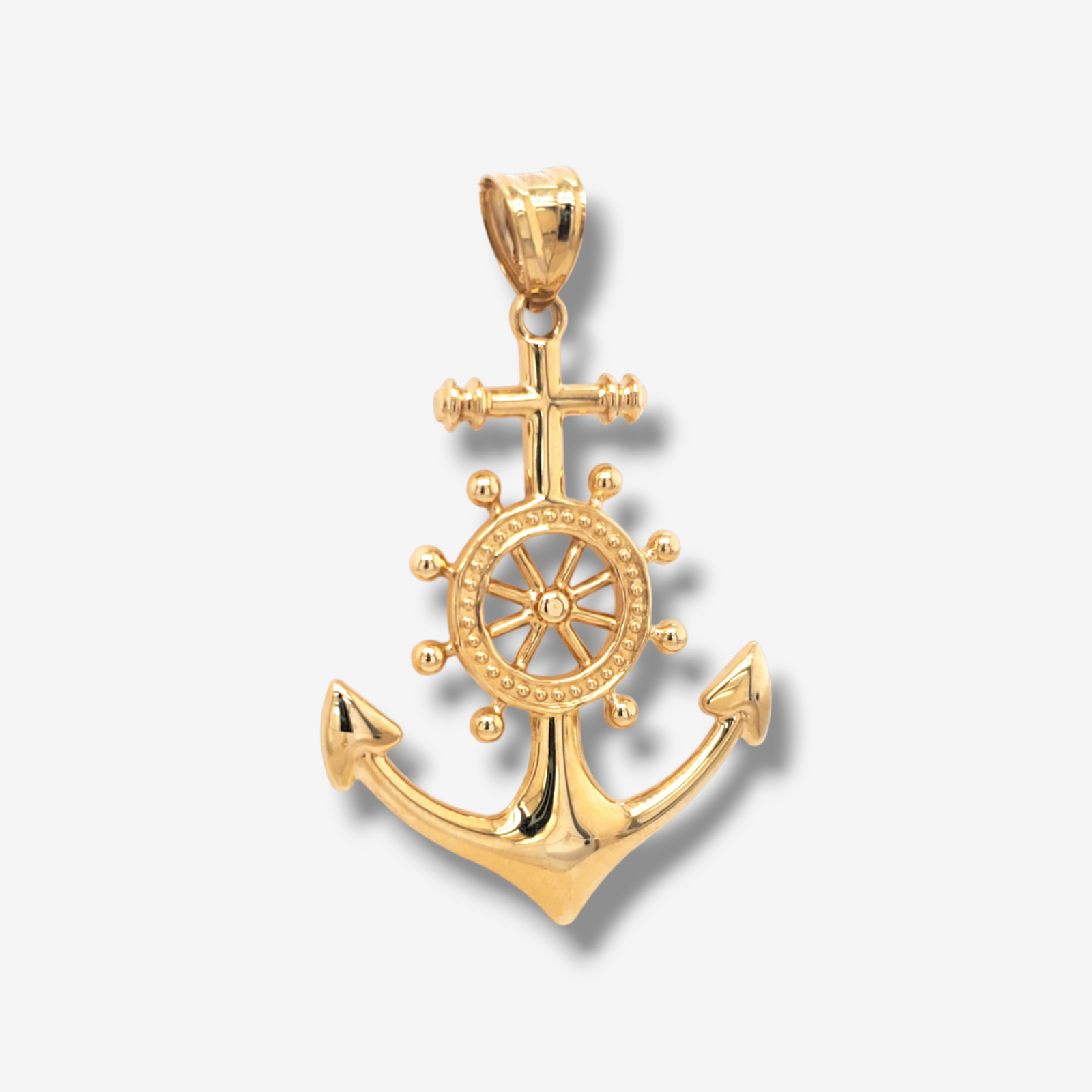 Dije (32 x 39 mm) Ancla c/ Timon & Cruz Puff – Oro Amarillo 18Kts