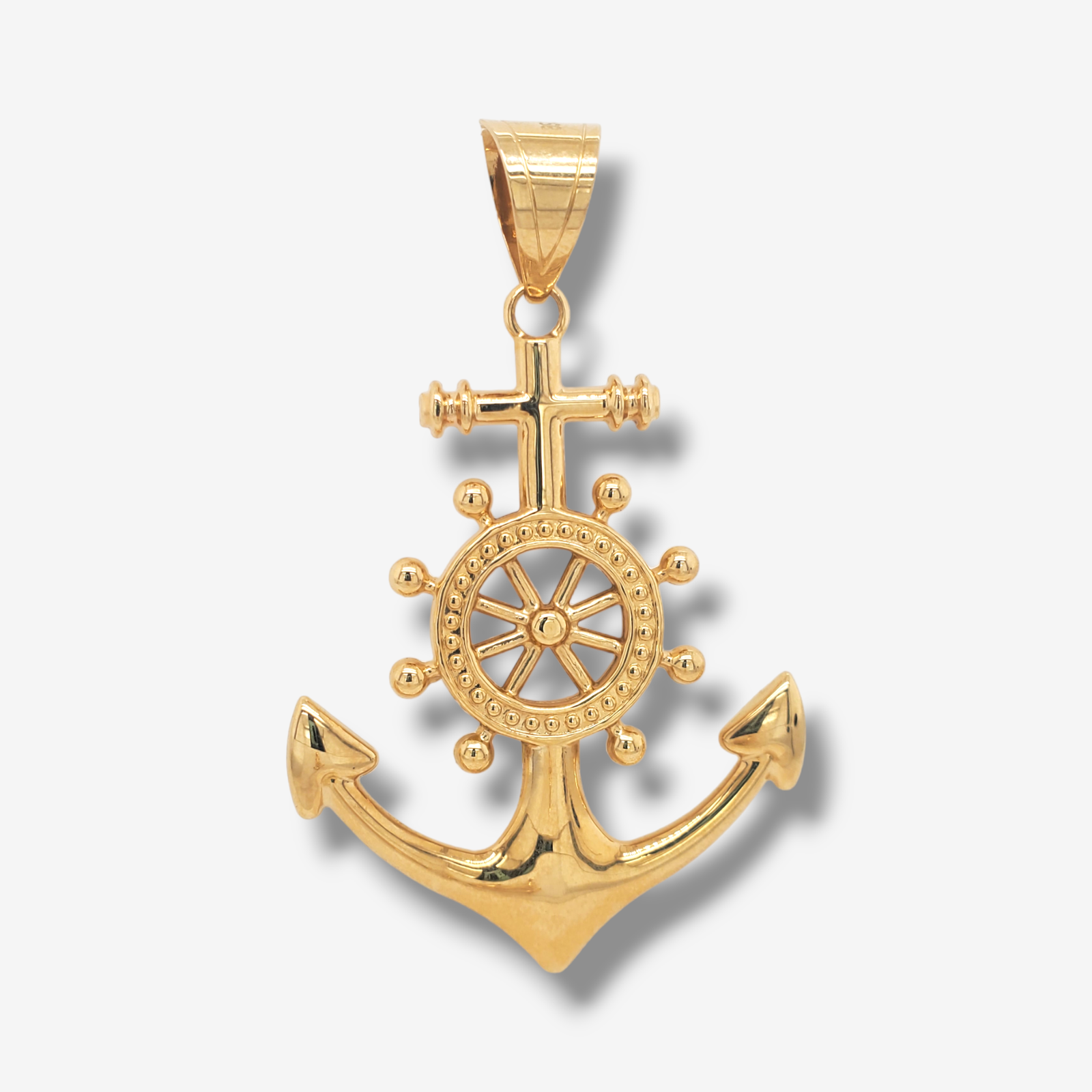 Dije (39 x 49 mm) Ancla c/ Timon & Cruz Puff – Oro Amarillo 18Kts