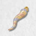 Dije (6 x 27 mm) Cuerno de la Suerte Liso/Satinado – Oro Tres Tonos 14Kts