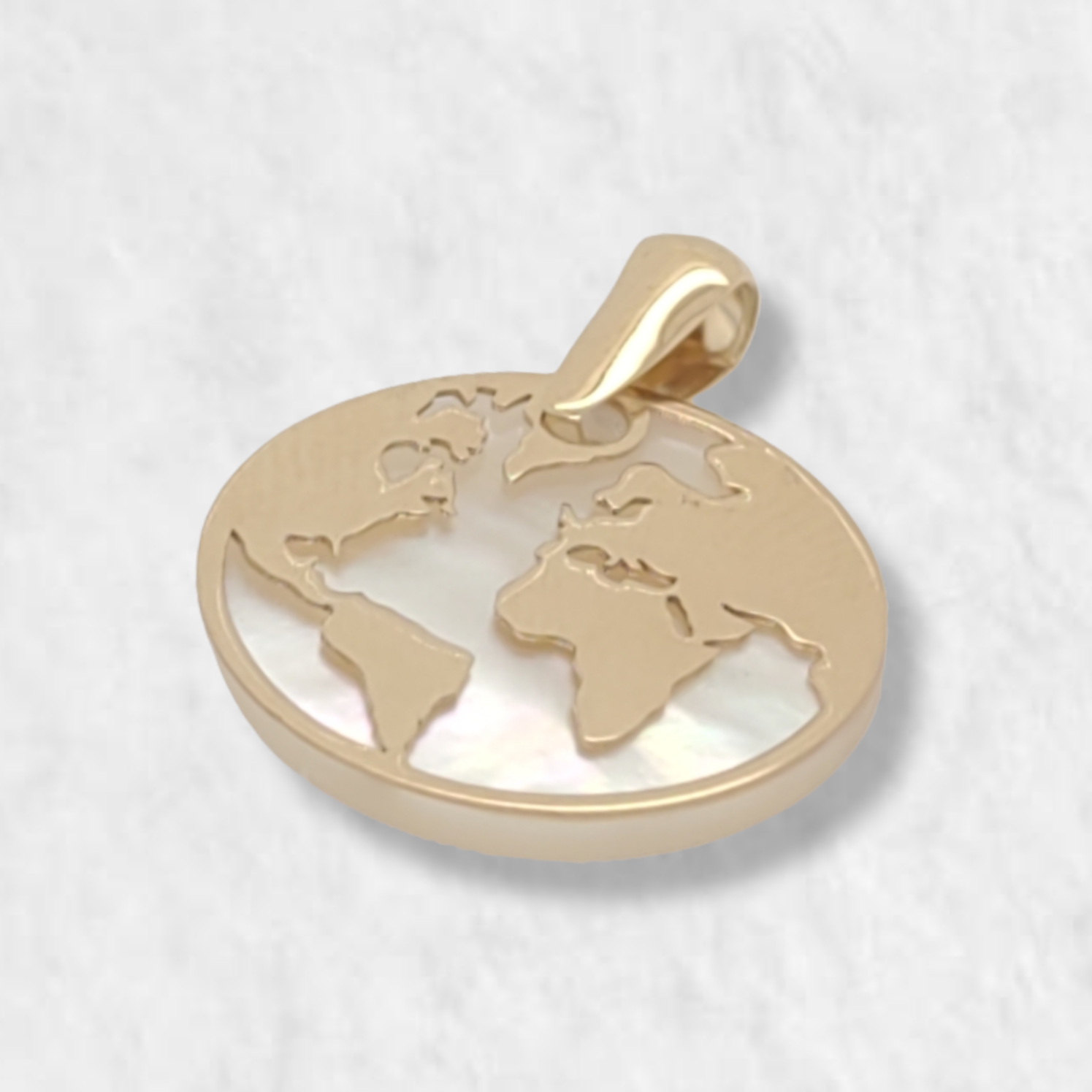 Dije Mapa Mundi Madreperla – Oro Amarillo 18Kts