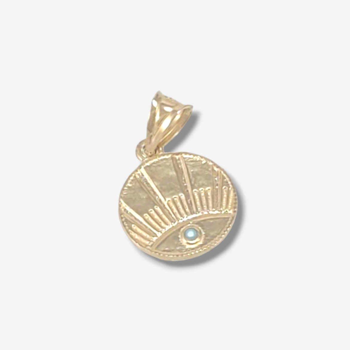 Dije Medalla (11 mm) c/ Ojo Turco & Turquesa – Oro Amarillo 14Kts