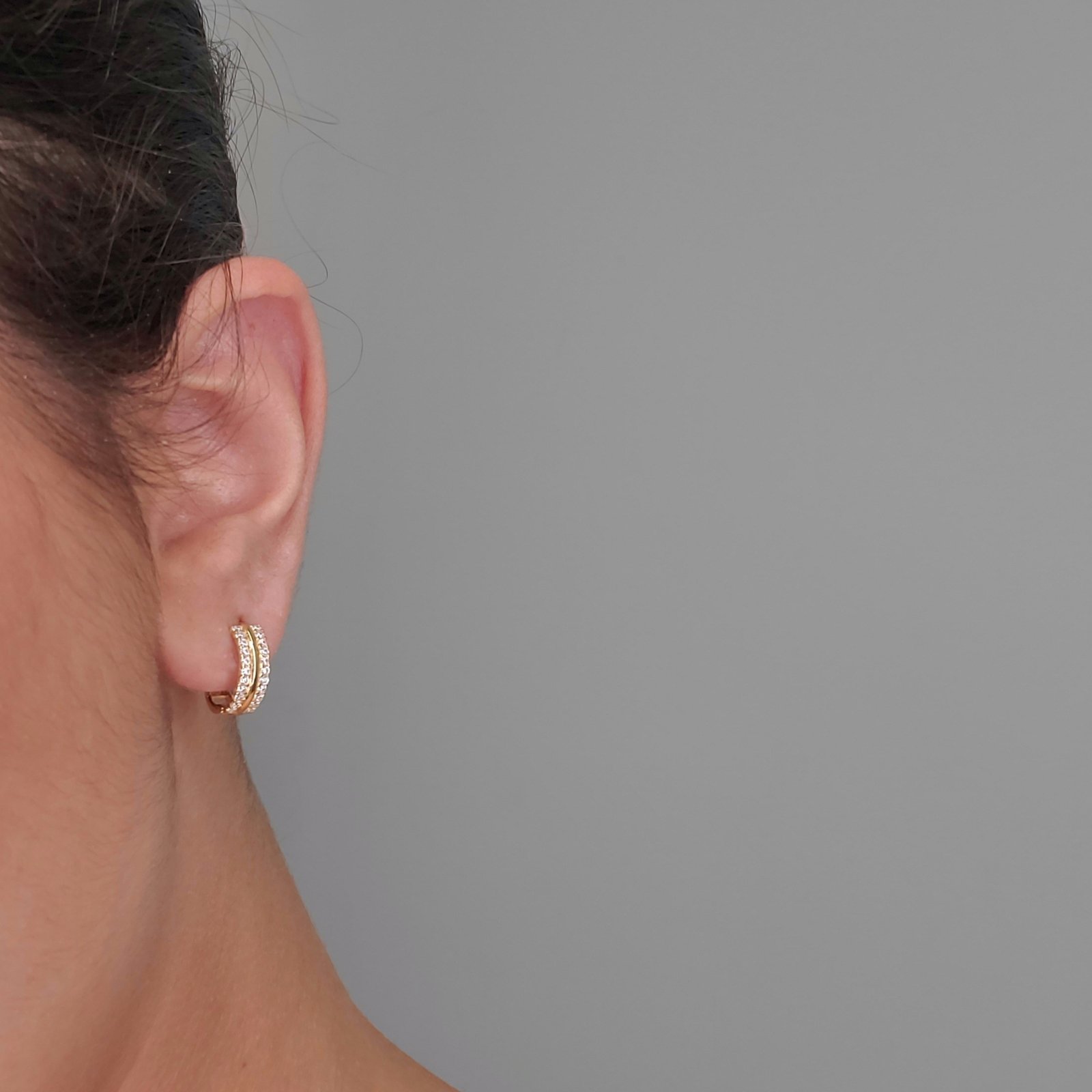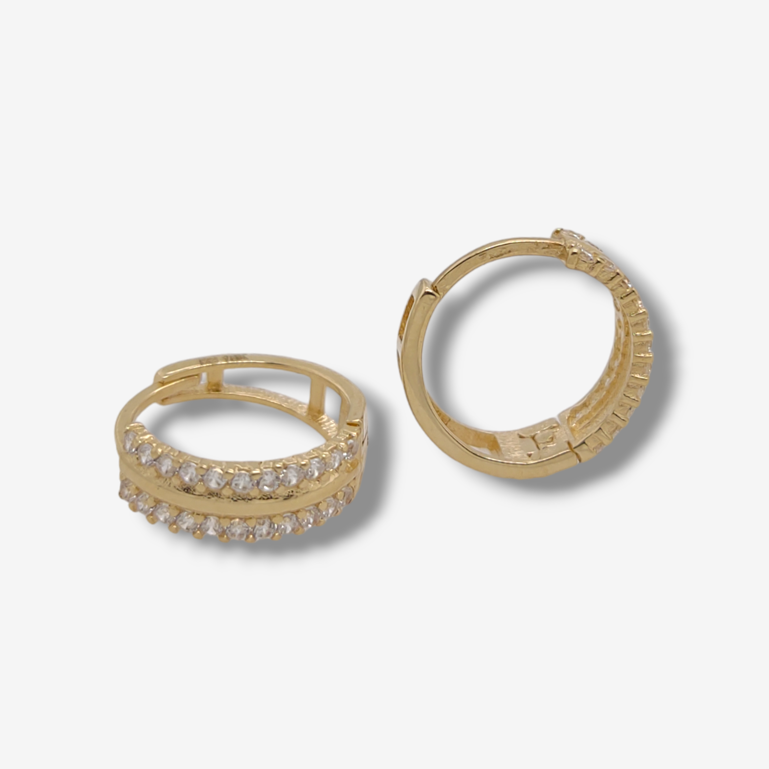 Huggies (14 mm) c/ Dos Lineas de Zircones Pave – Oro Amarillo 18Kts