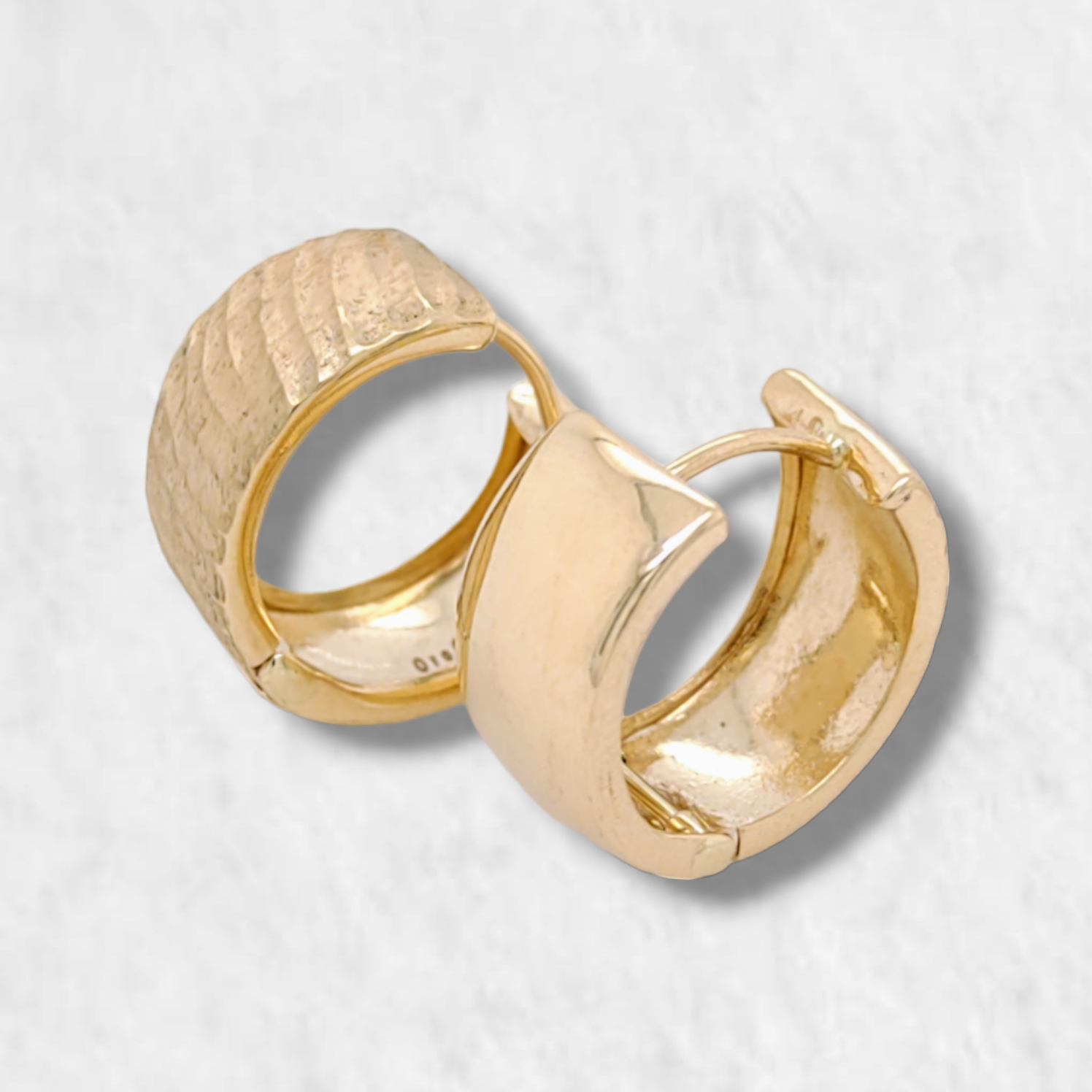 Huggies (17 mm) Reversibles (Liso/Satinado) Lineas Diagonales – Oro Amarillo 14Kts