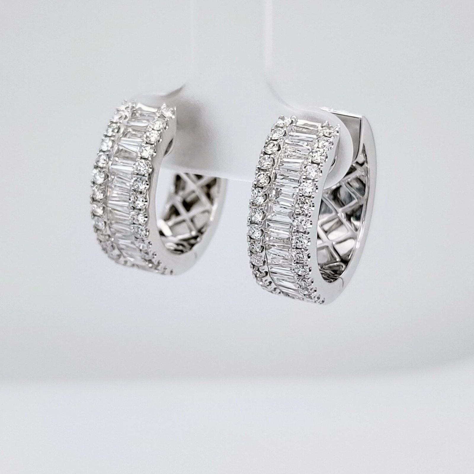 Huggies (19 mm) c/ Diamantes Pave Baguette – Oro Blanco 18Kts