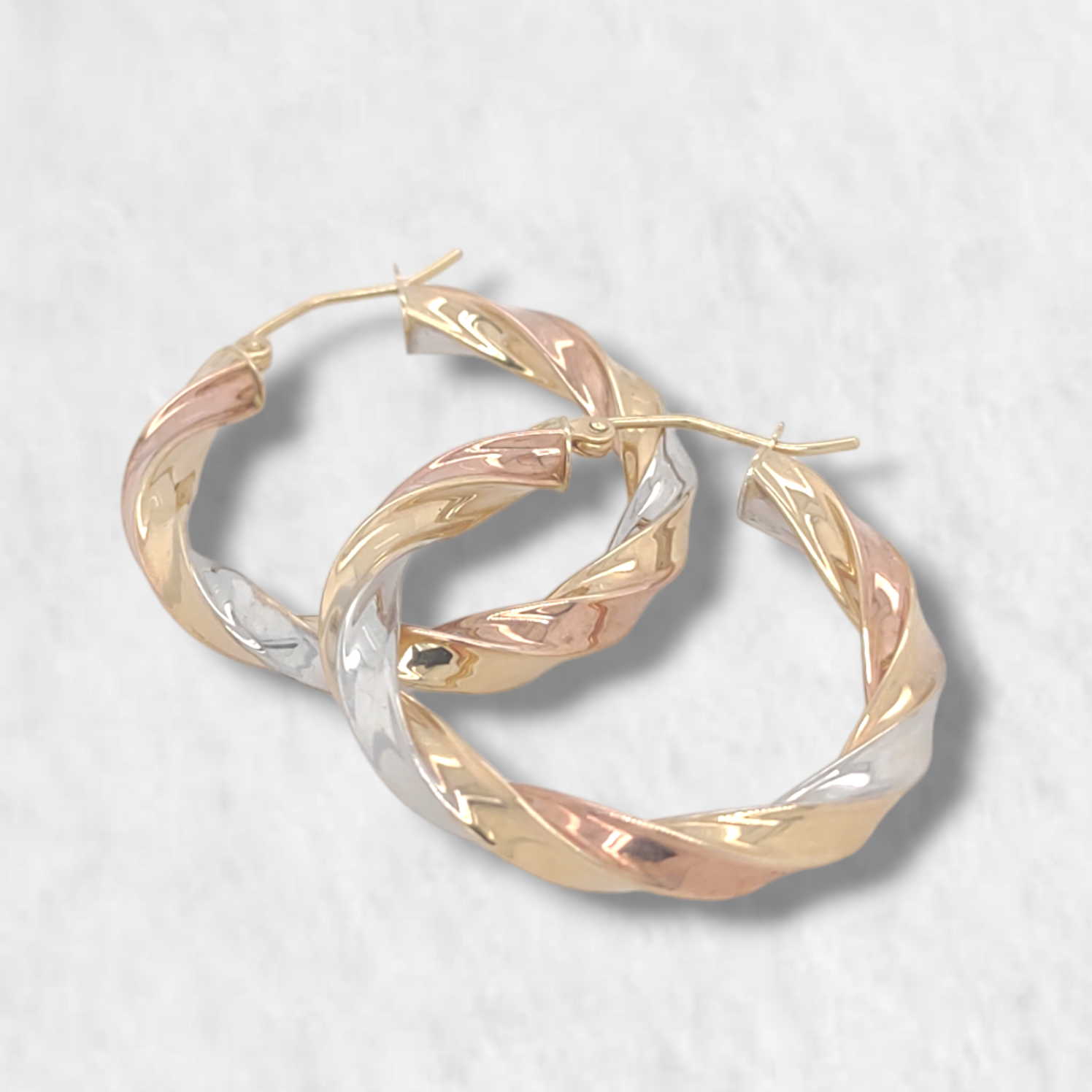 Huggies Reversible Diamantados – Oro Tres Tonos 18Kts