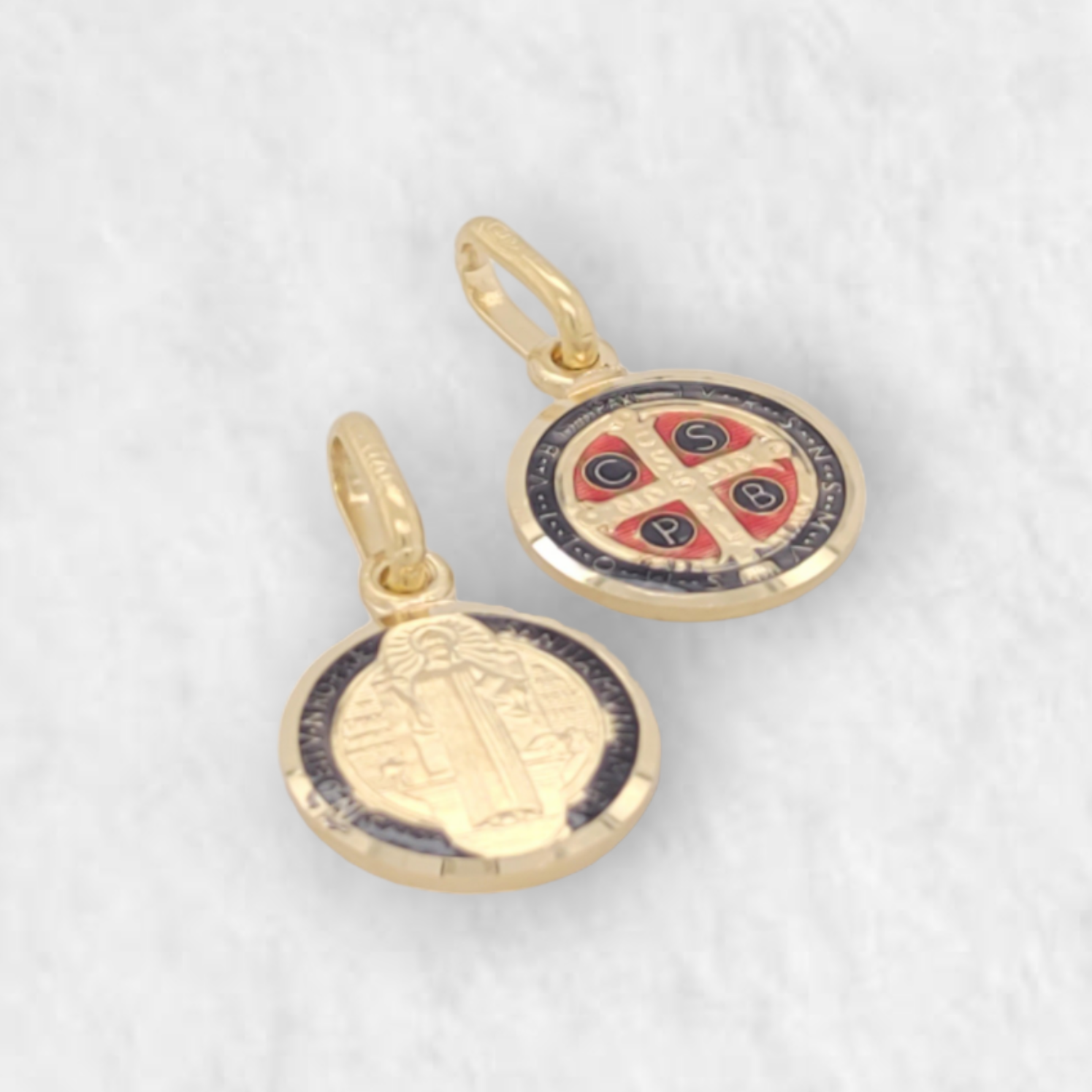 Medalla (11 mm) San Benito ABAD c/ Esmalte – Oro Amarillo 18Kts