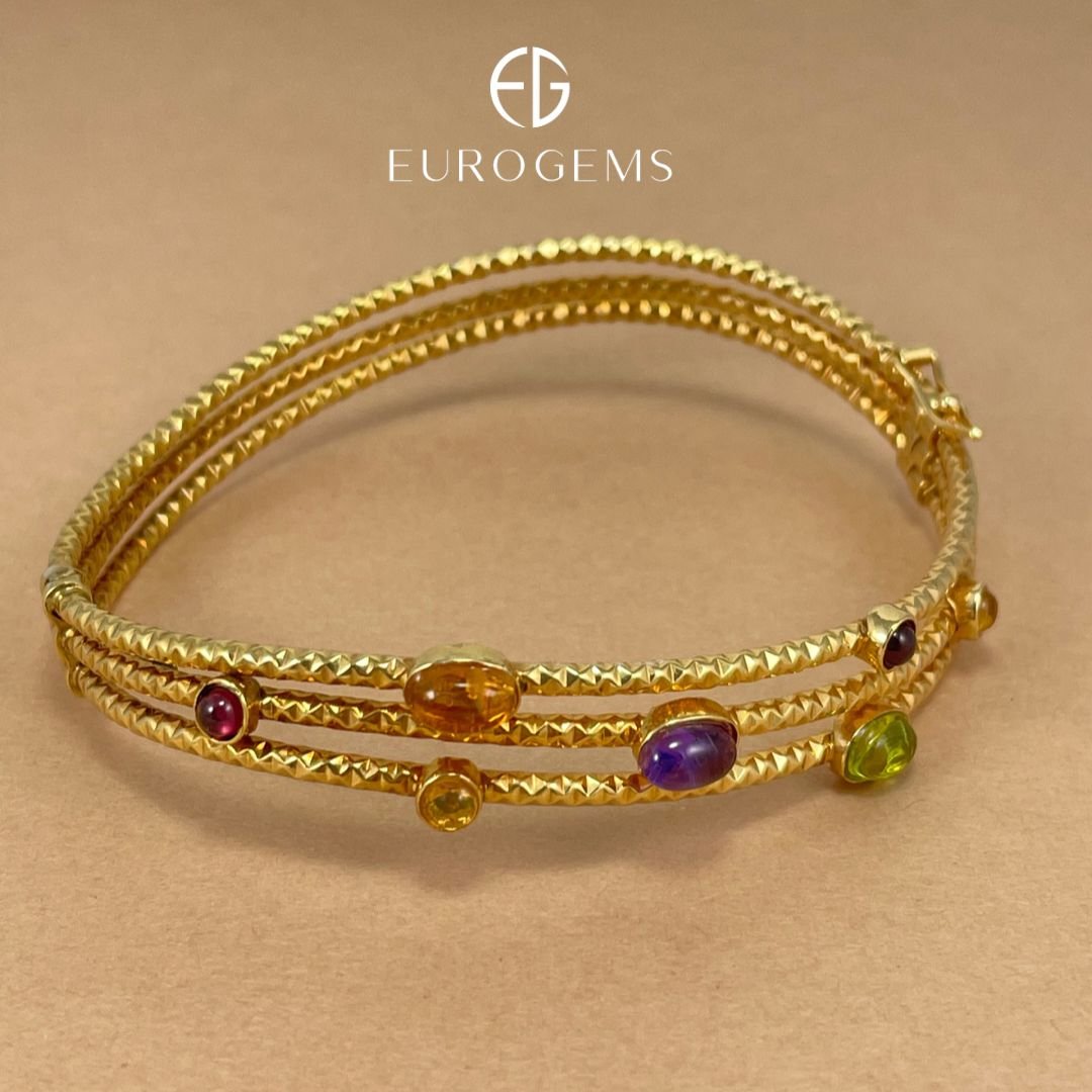 Pulsera 3 Hileras c/ cabuchones piedras semi preciosas – Oro Amarillo 14Kts