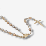 Rosario (60 cm) Largo c/ Esferas Lisas (5 mm) c/ Vitela Guadalupe & Crucifijo – Oro Tres Tonos 14Kts