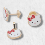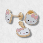 Set (8 x 8 mm) Dije & Zarcillos Hello Kitty c/ Esmalte – Oro Amarillo 14Kts