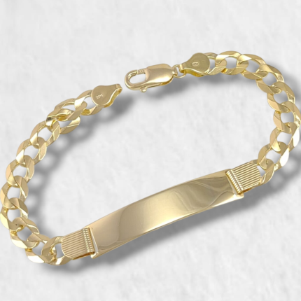 Brazalete Cuero c/ Terminales & Broche Ovalado – Oro Amarillo 14Kts