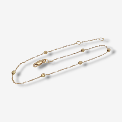Tobillera (25.5 cm) Cadena Fina c/ Esferas c/ Esmalte Rojo & Cierre Lobster – Oro Amarillo 18Kts