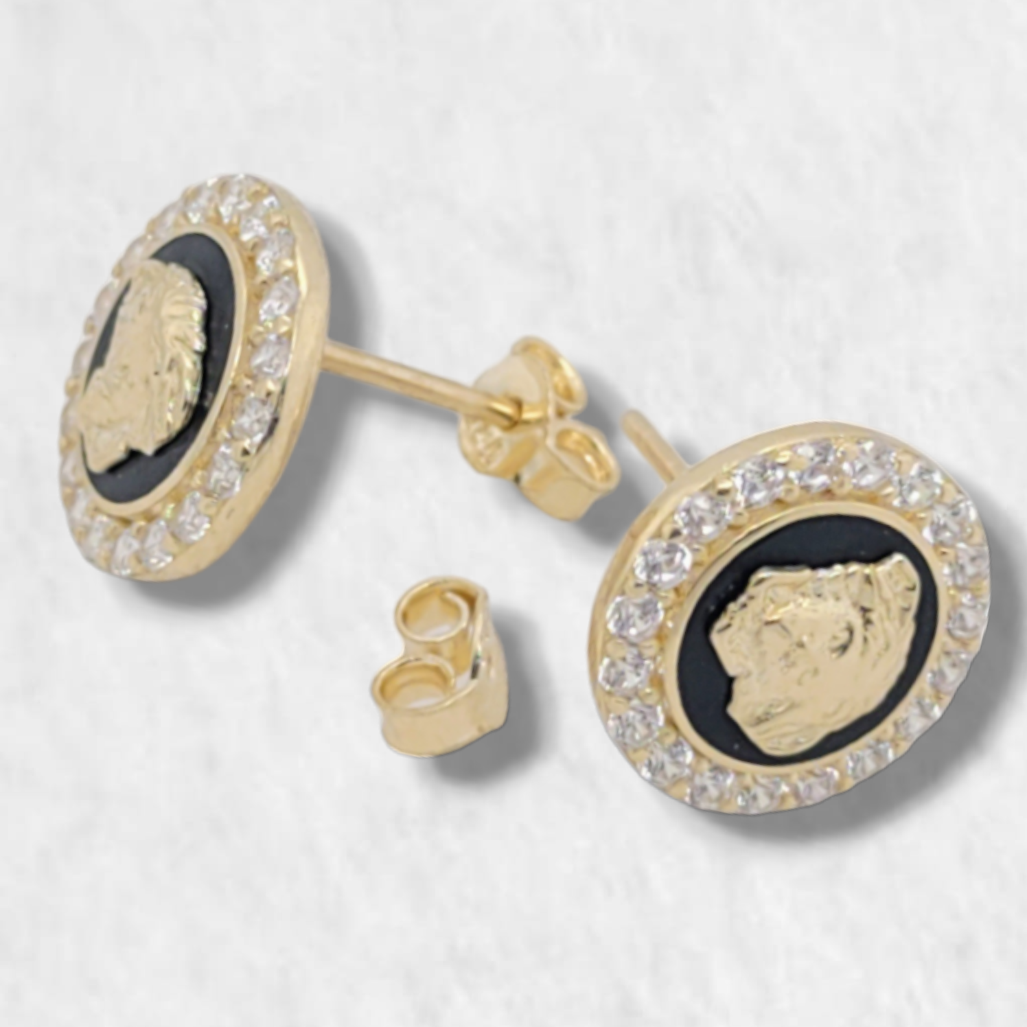 Zarcillos (11 mm) Medusa c/ Marco Zircones – Oro Amarillo 14Kts