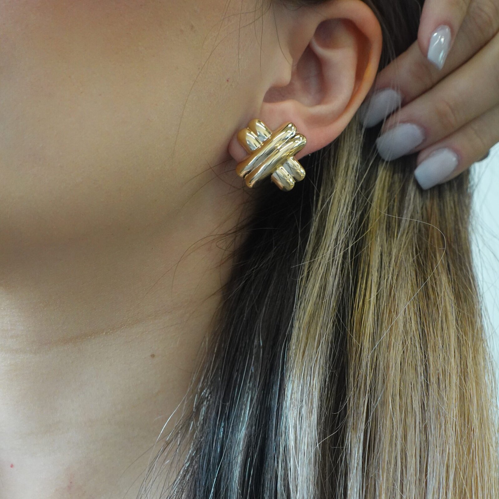 Zarcillos (20 x 20 mm) Doble X c/ Cierre Omega – Oro Amarillo 14Kts