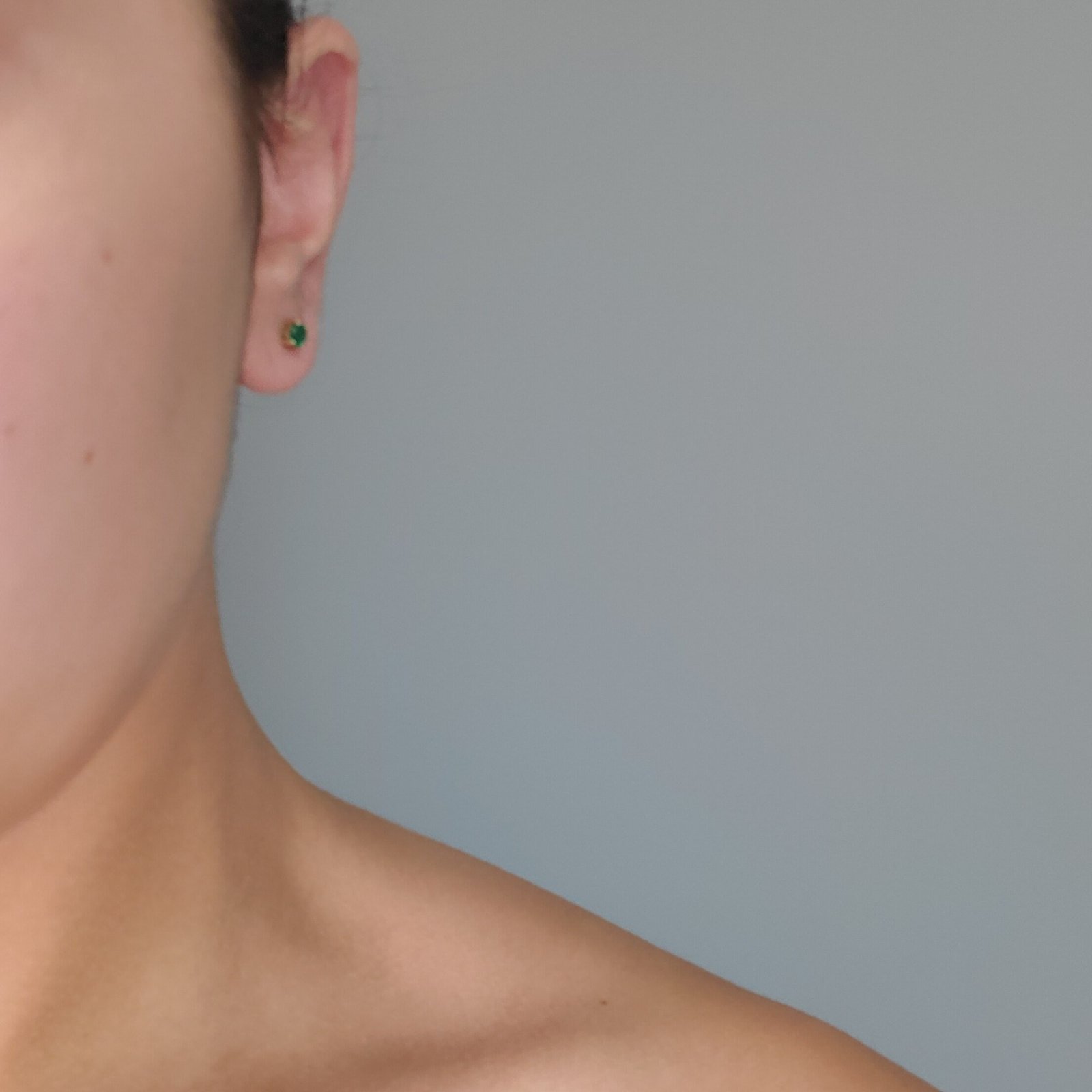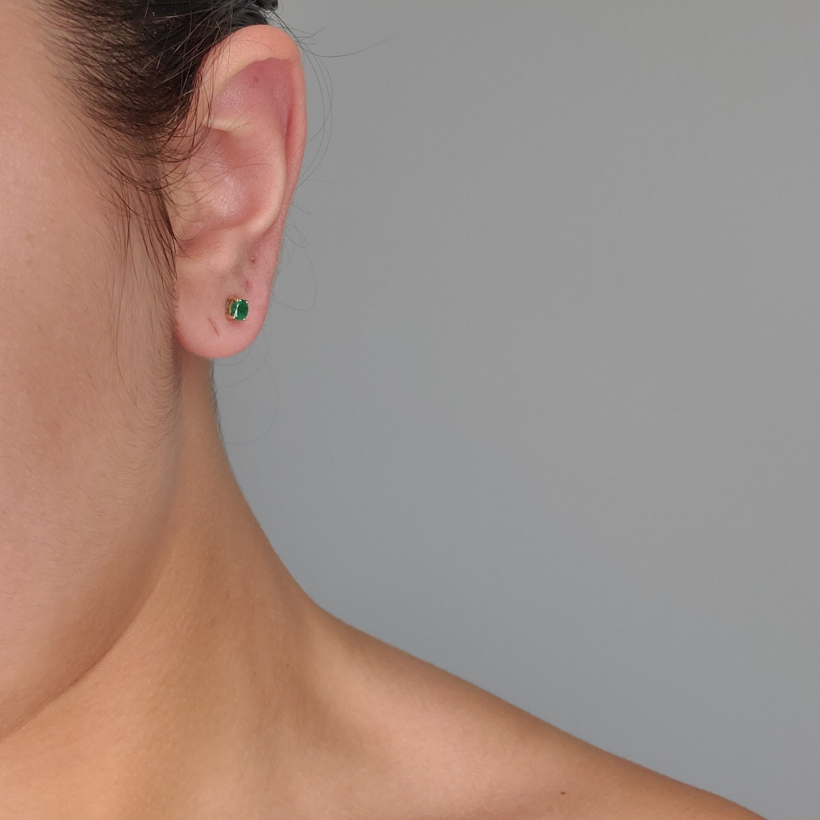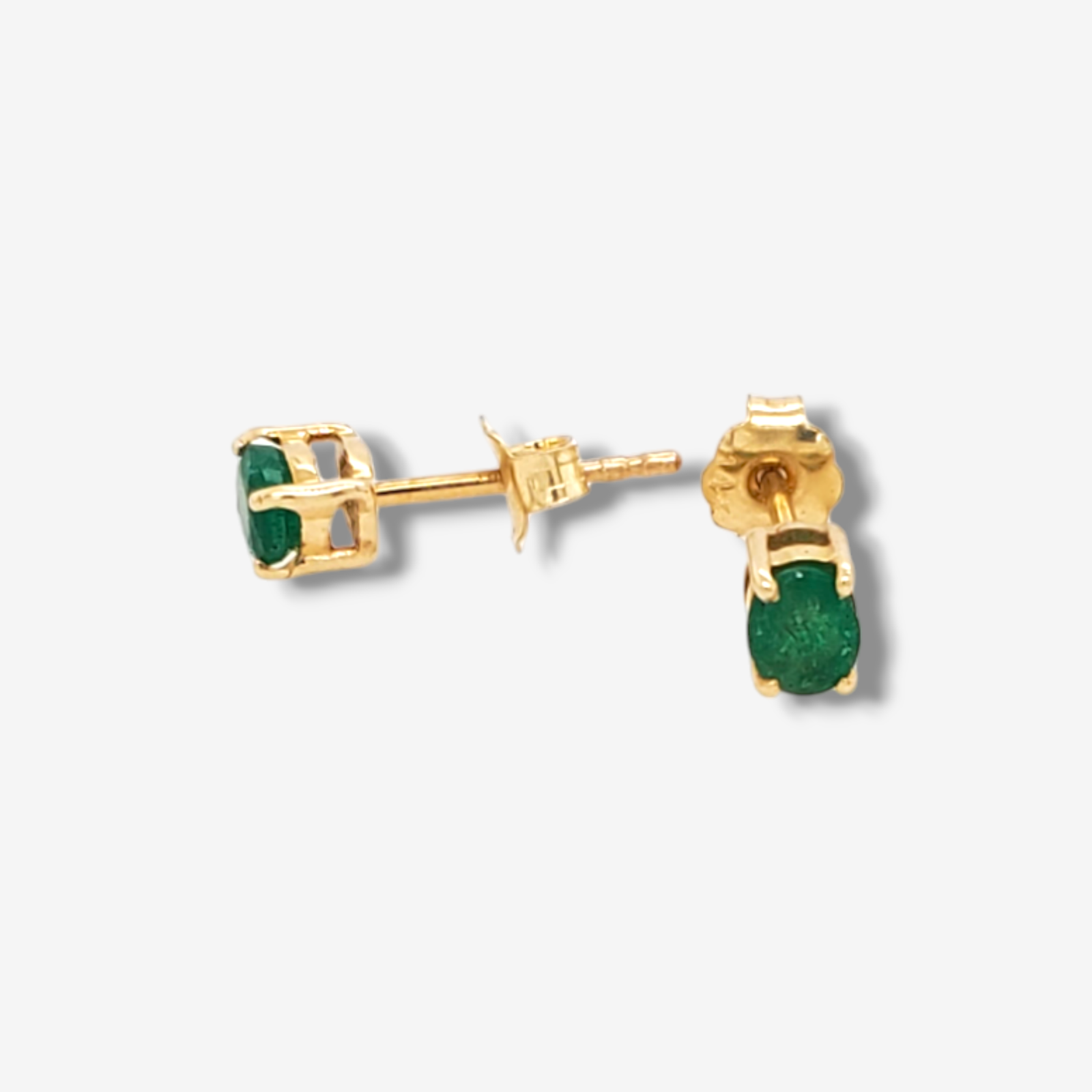 Zarcillos (3.4 x 4.2 mm) Esmeraldas Ovaladas c/ 4 Prongs – Oro Amarillo 14Kts
